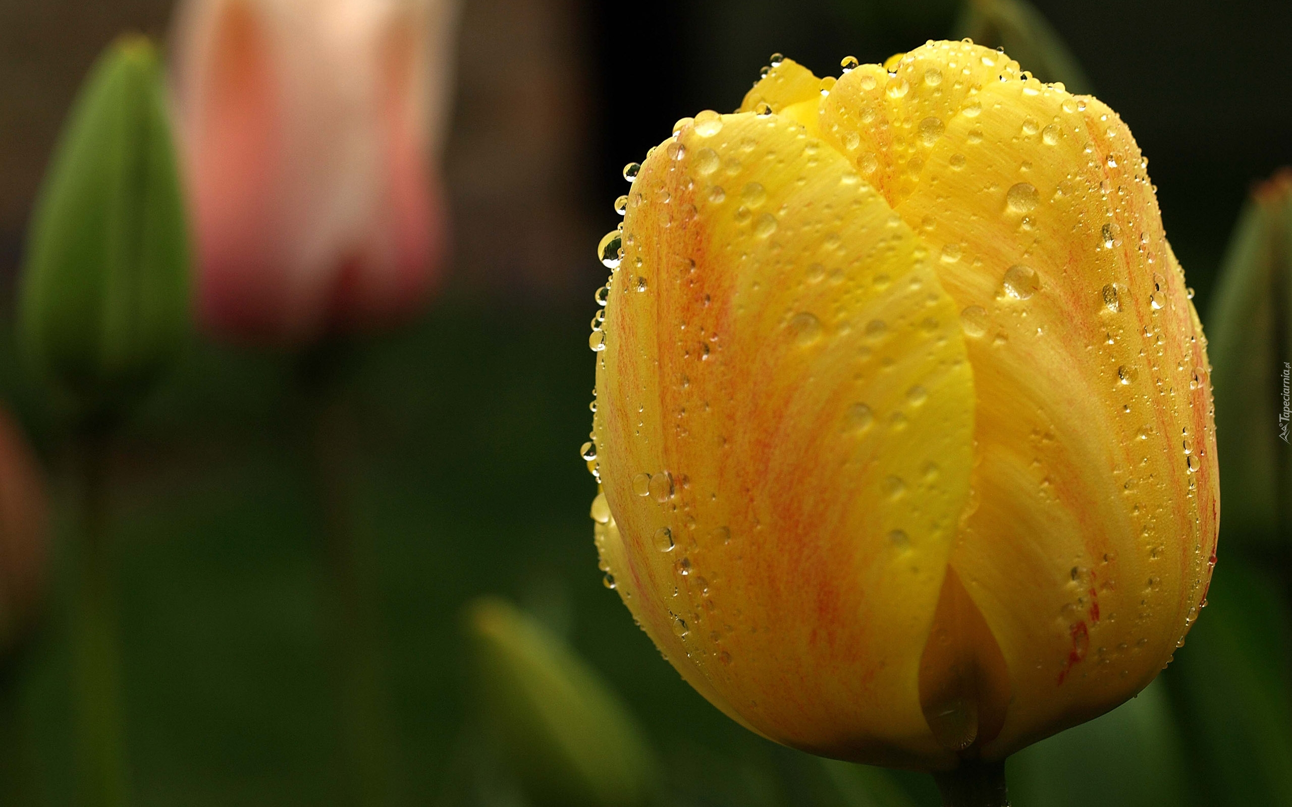 Edytor tapety: Żółty, Tulipan, Krople, Rosy