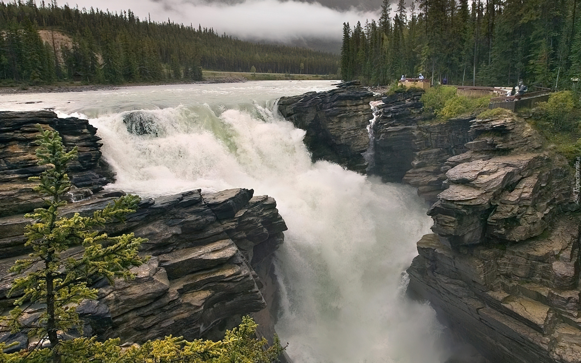 Edytor tapety: Wodospad, Skały, Alberta, Kanada