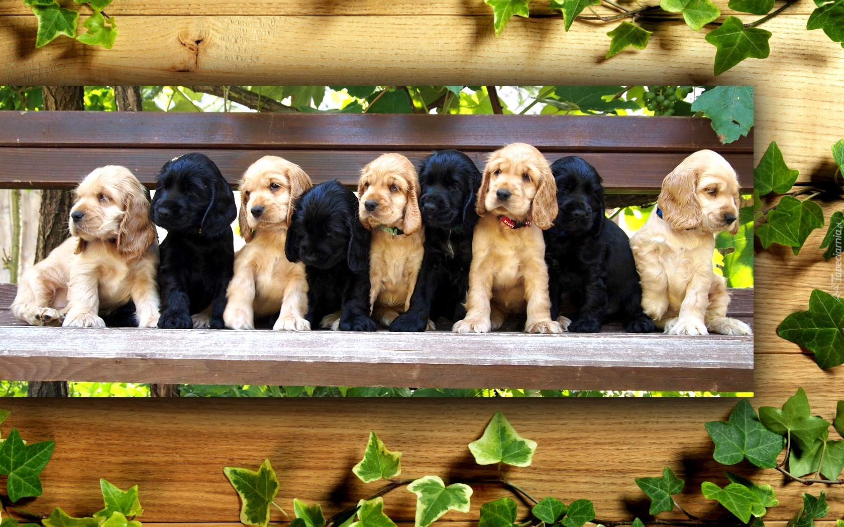 Edytor tapety: Szczeniaczki, Spaniele, Ławka