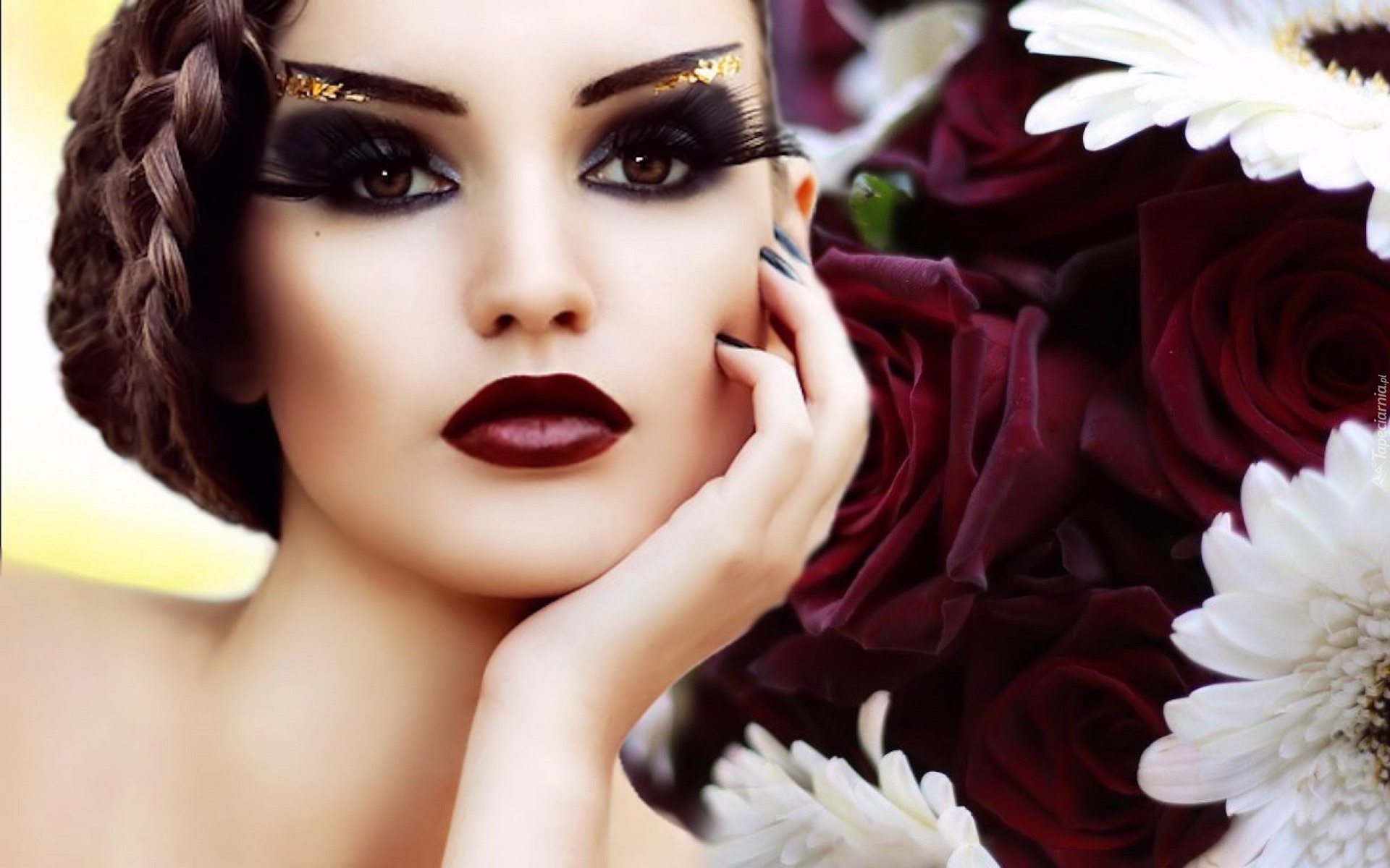 Edytor tapety: Kobieta, Makijaż, Kwiaty