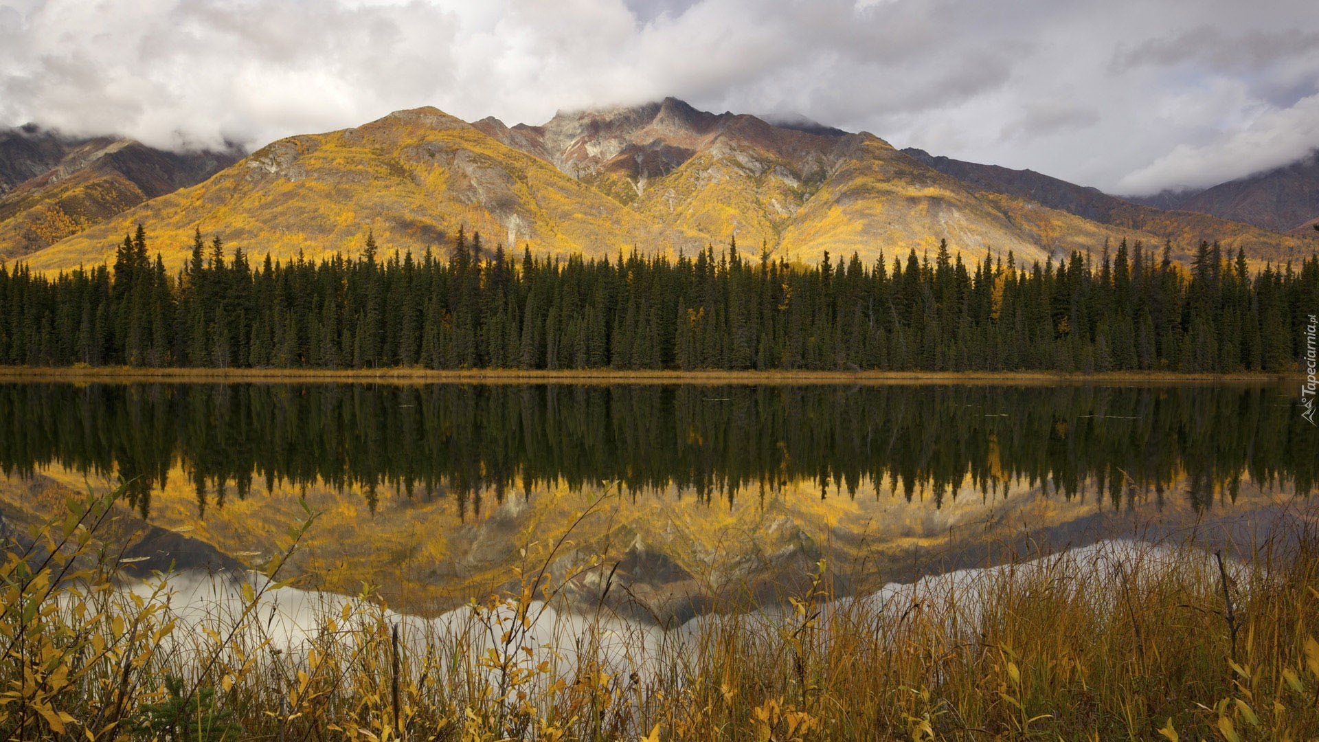 Edytor tapety: Góry, Las, Jezioro, Odbicie