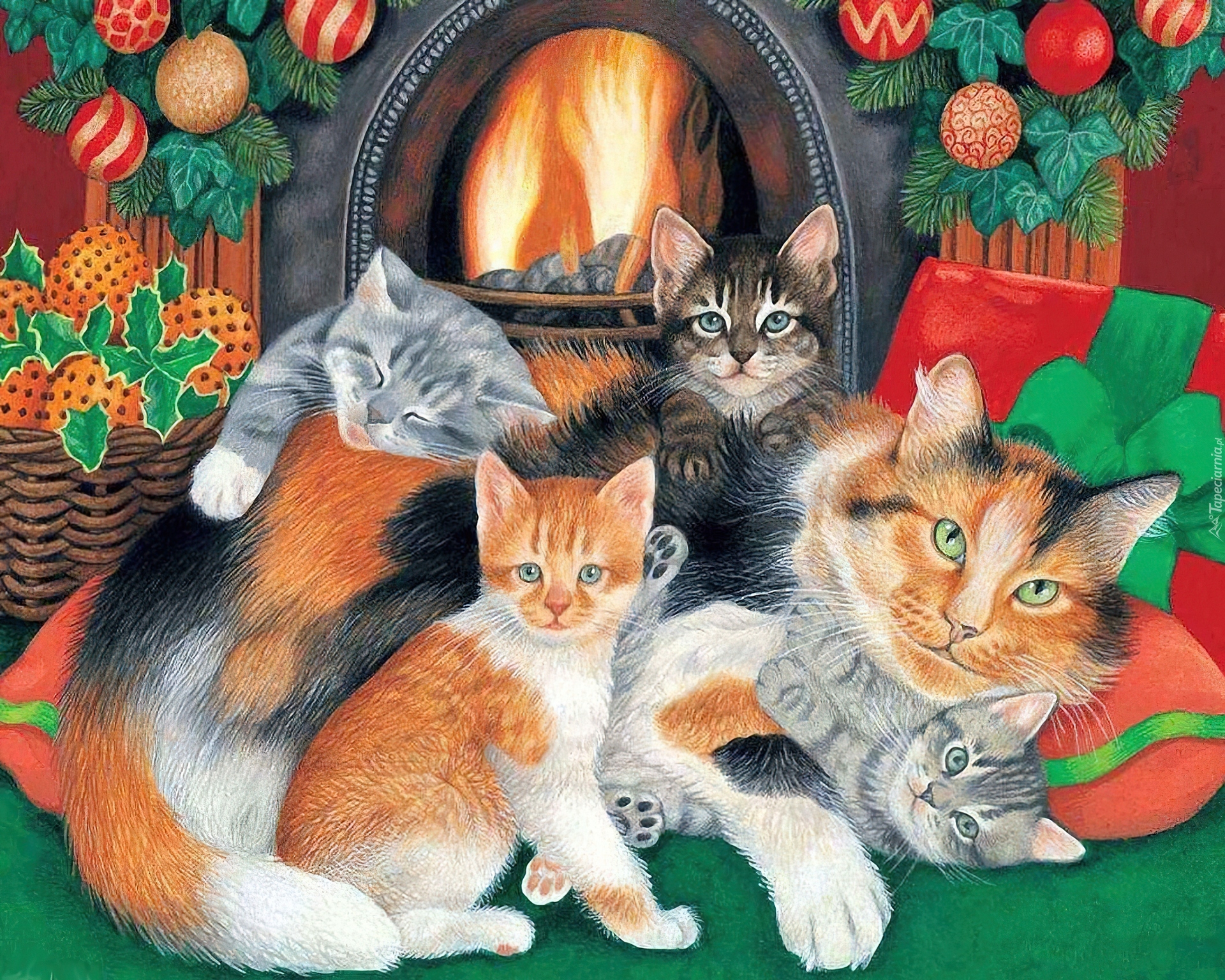 Edytor tapety: Koty, Kominek, Boże, Narodzenie