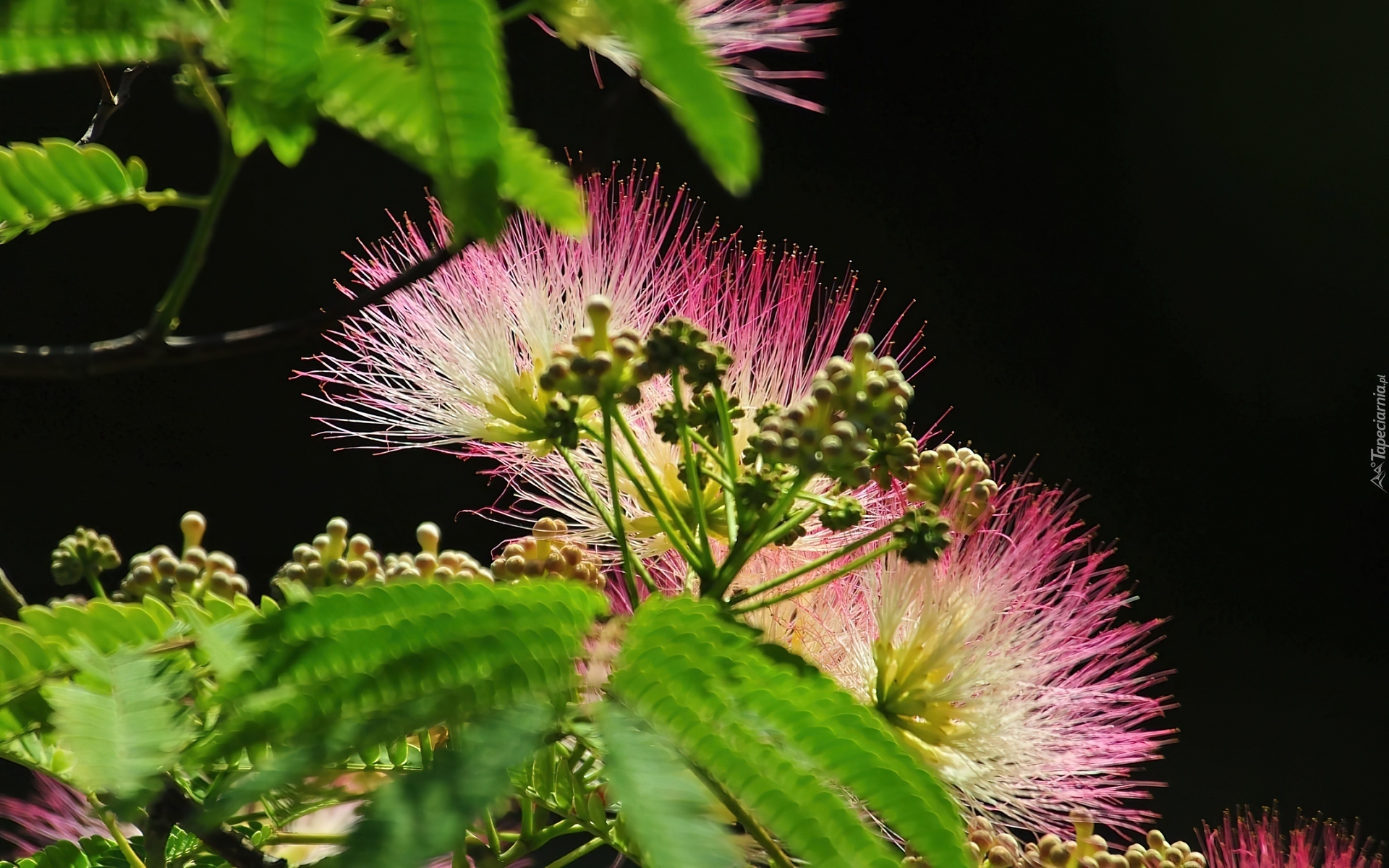 Edytor tapety: Albicja, Jedwabista, Kwiaty, Liście