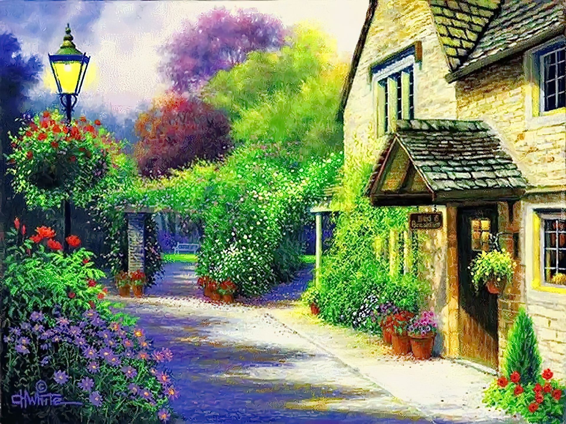 Edytor tapety: Dom, Droga, Ogród, Charles H. White