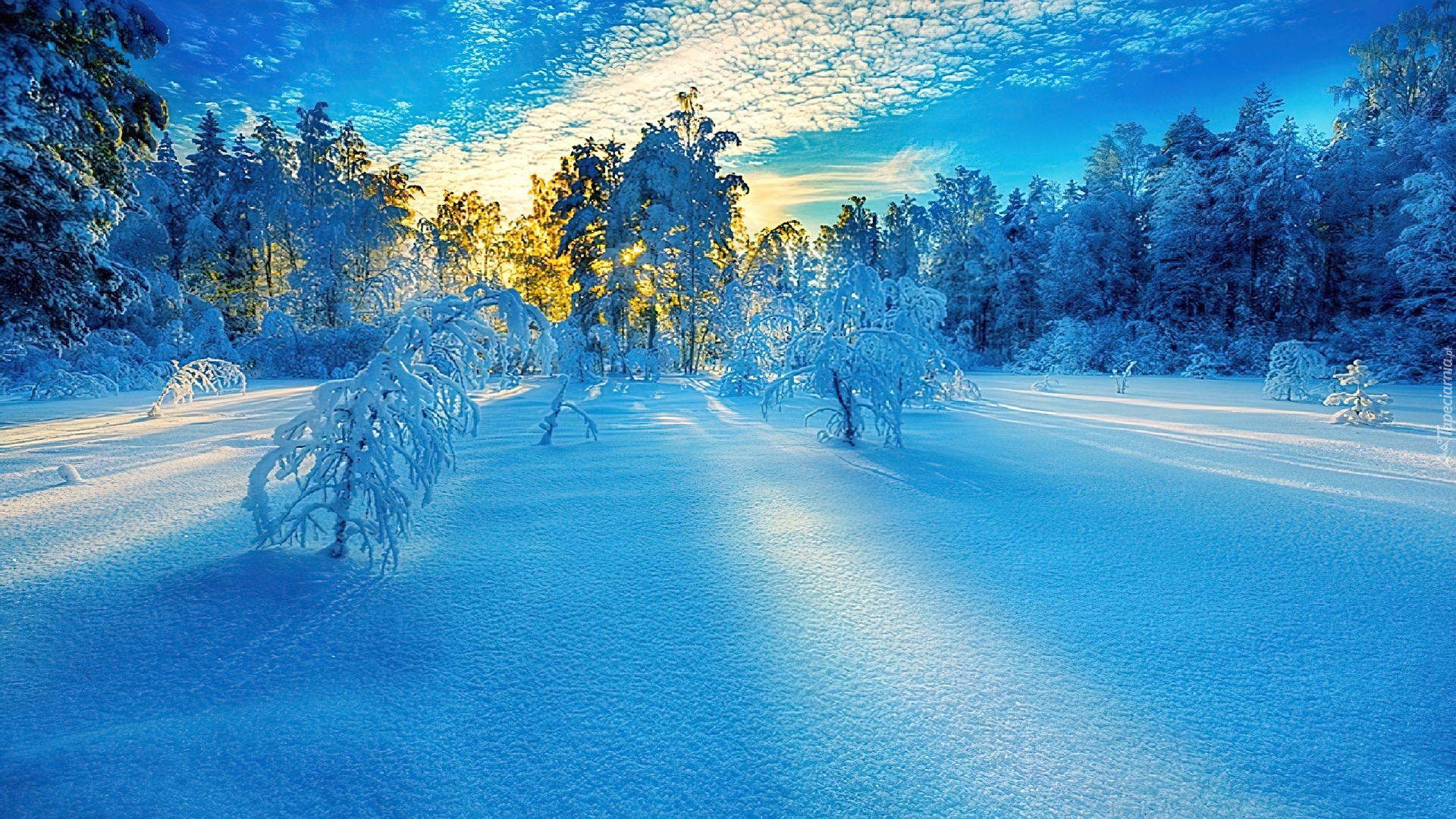 Edytor tapety: Zima, Las, Przebijające, Światło