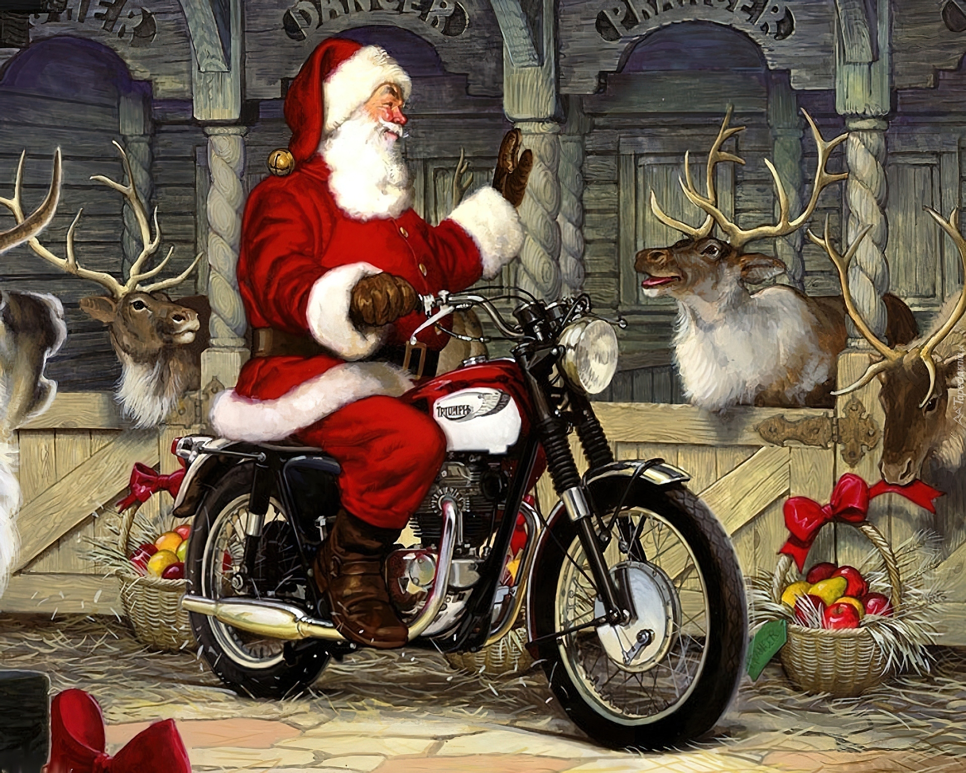 Edytor tapety: Mikołaj, Motor, Renifery