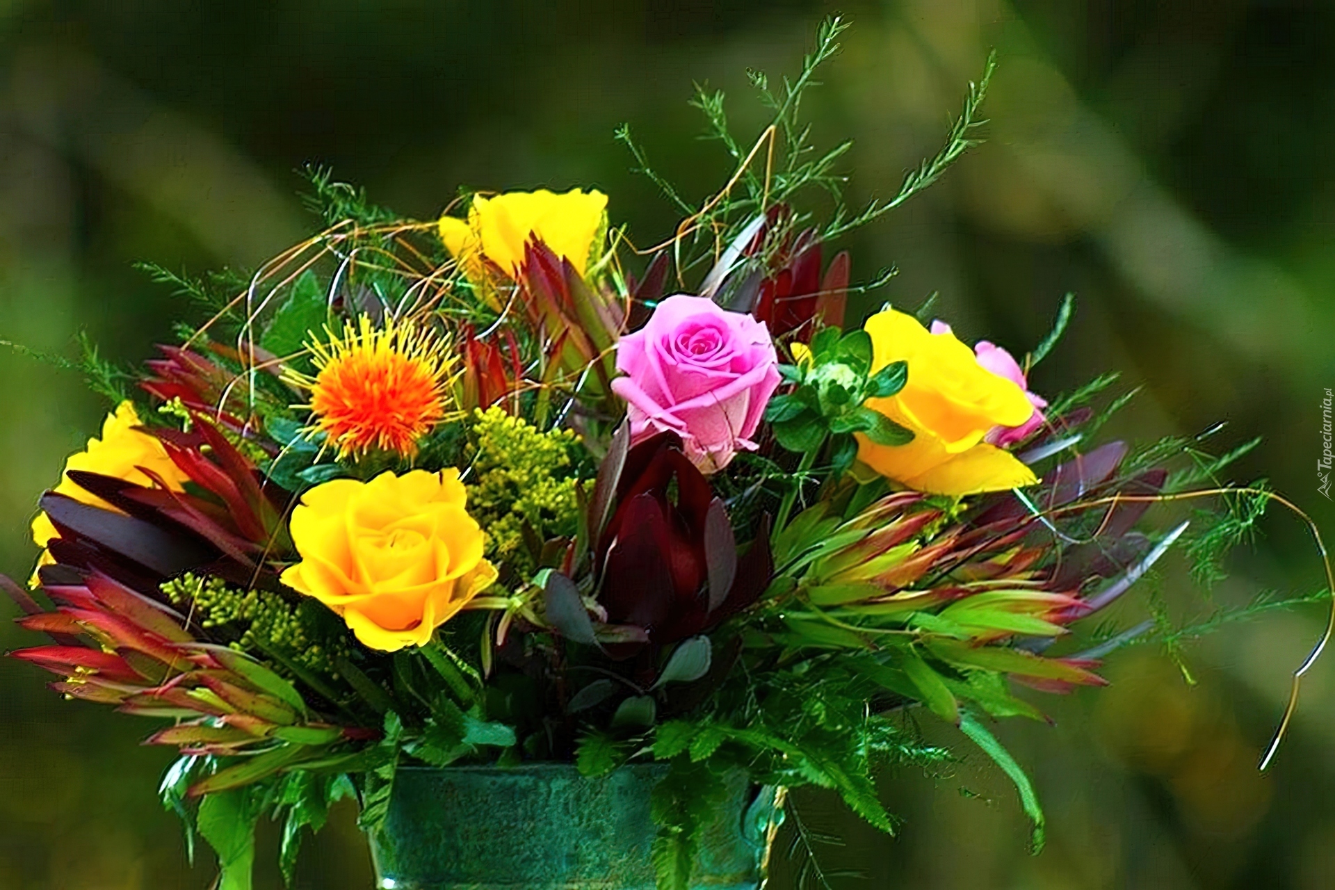 Edytor tapety: Bukiet, Kwiatów, Wiadro