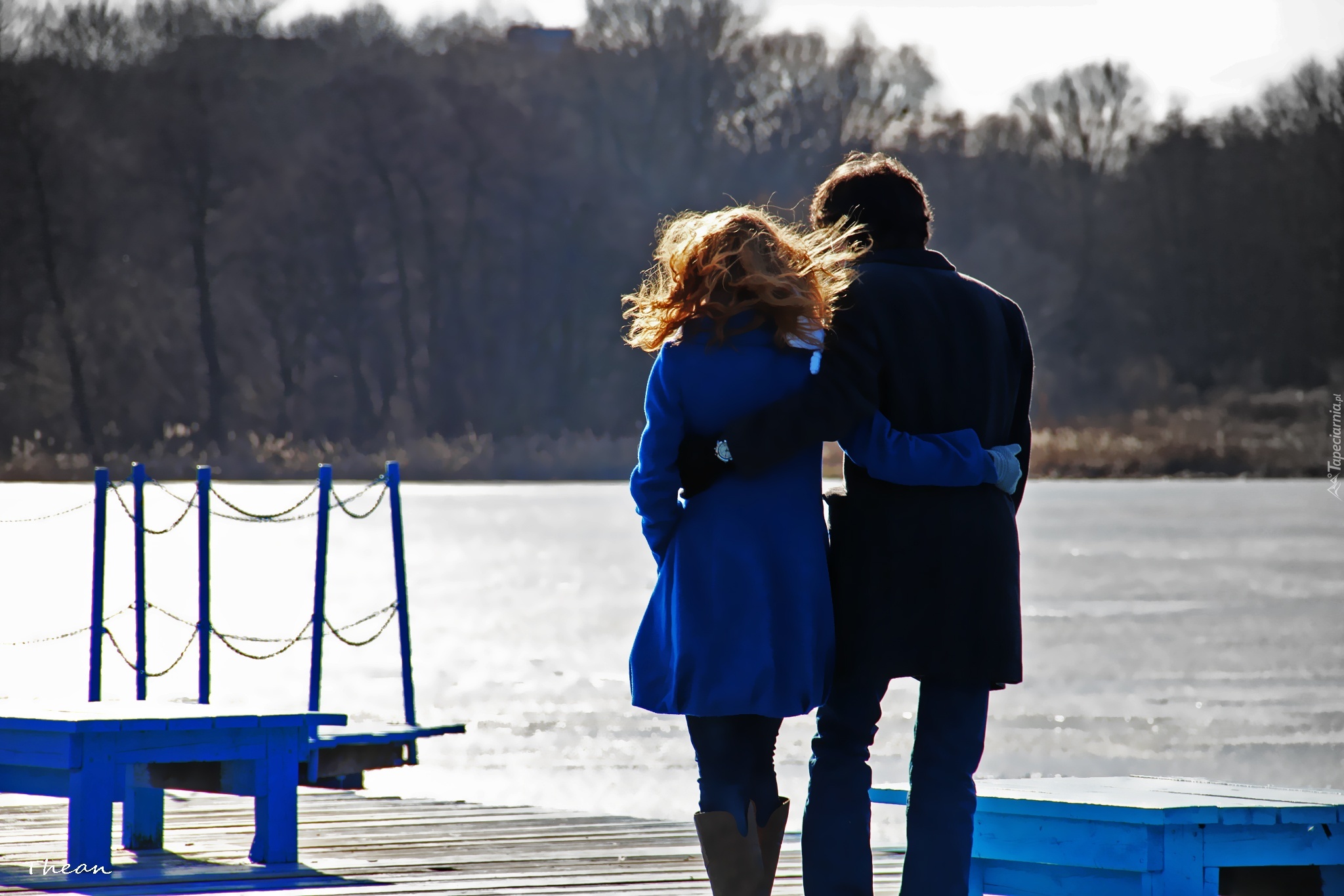 Edytor tapety: Kobieta, Mężczyzna, Molo, Jezioro