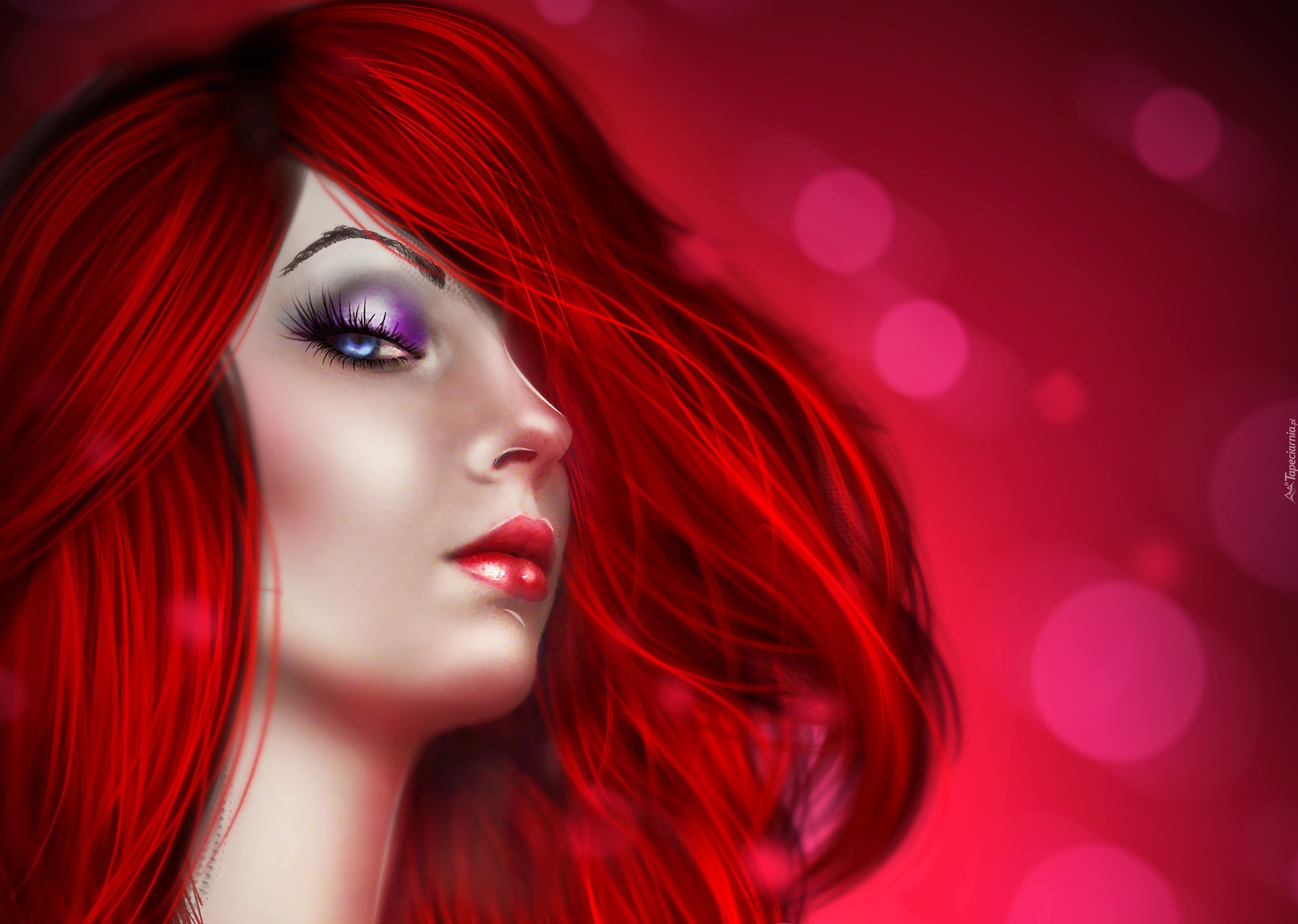 Edytor tapety: Kobieta, Czerwone, Włosy