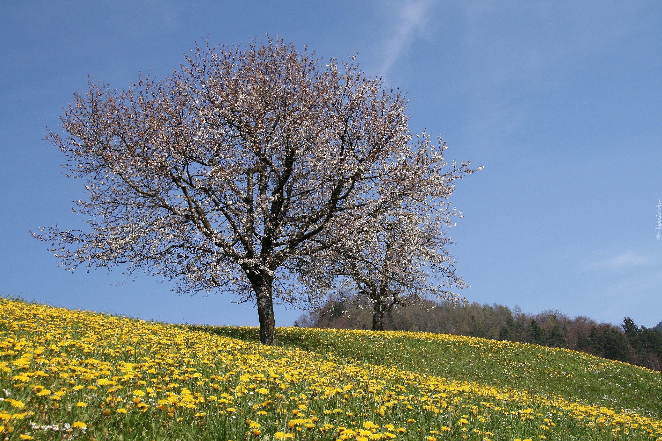 Edytor tapety: Łąka, Kwitnące, Drzewo
