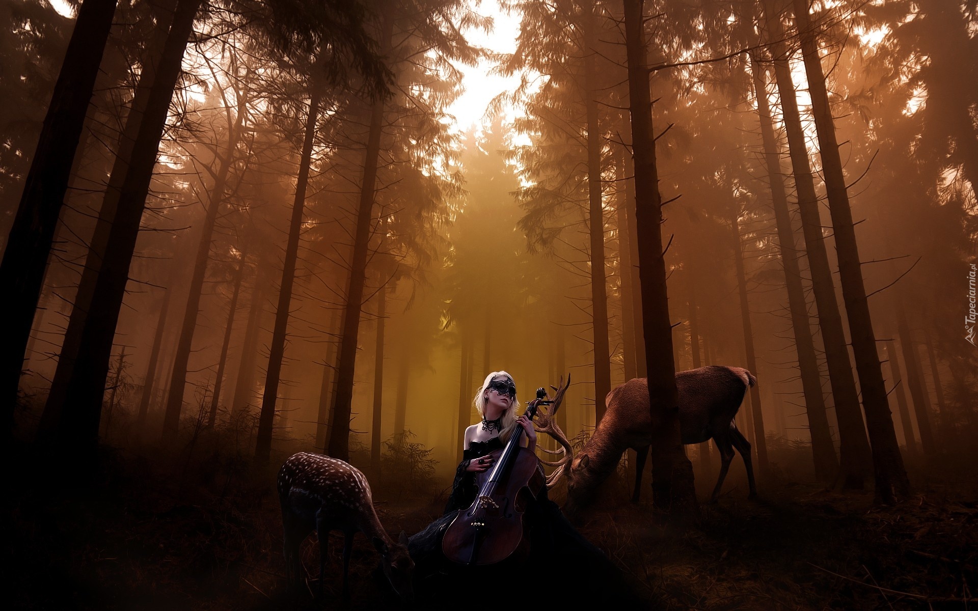 Edytor tapety: Kobieta, Las, Jeleń, Sarna