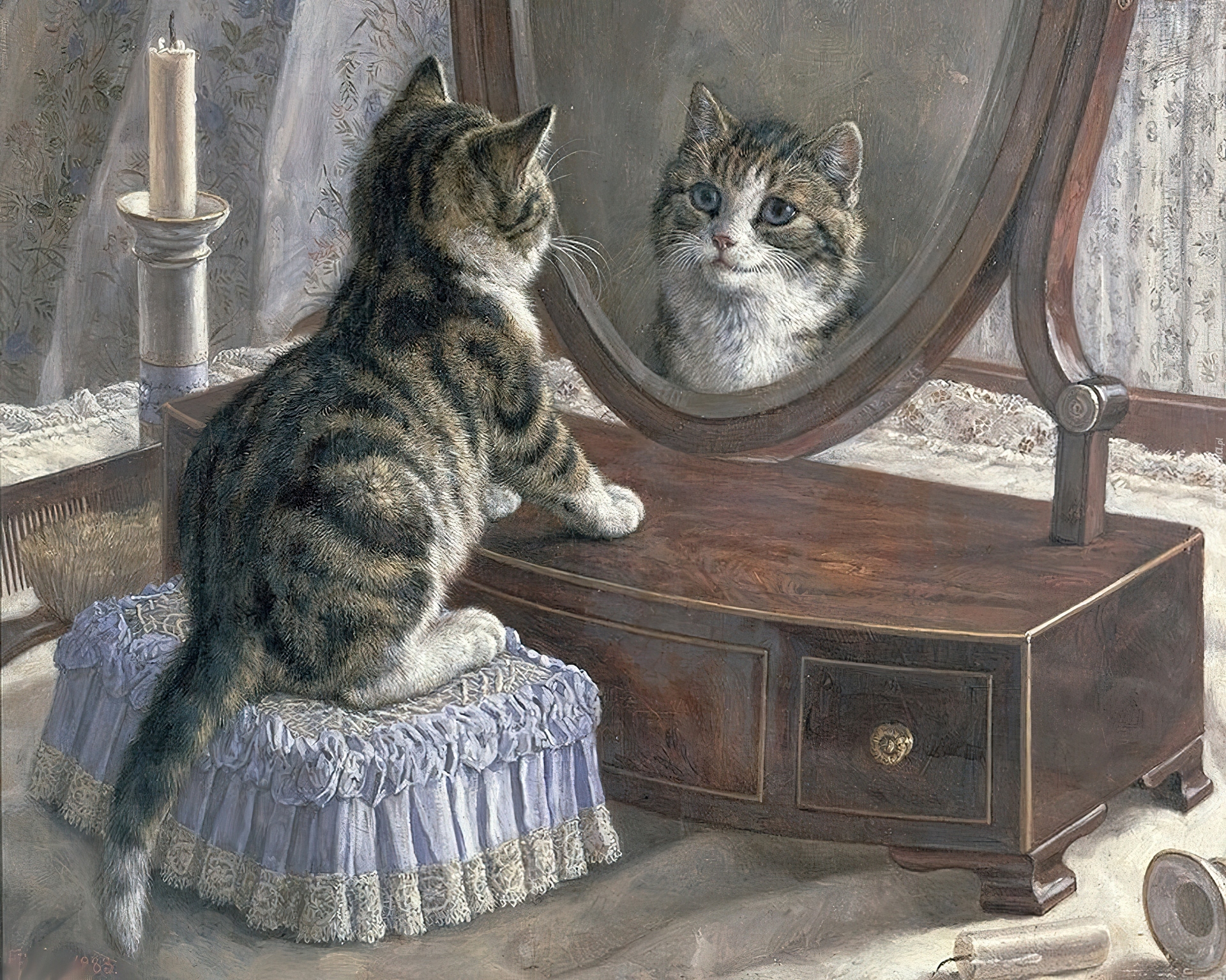 Edytor tapety: Mały, Kotek, Lustro