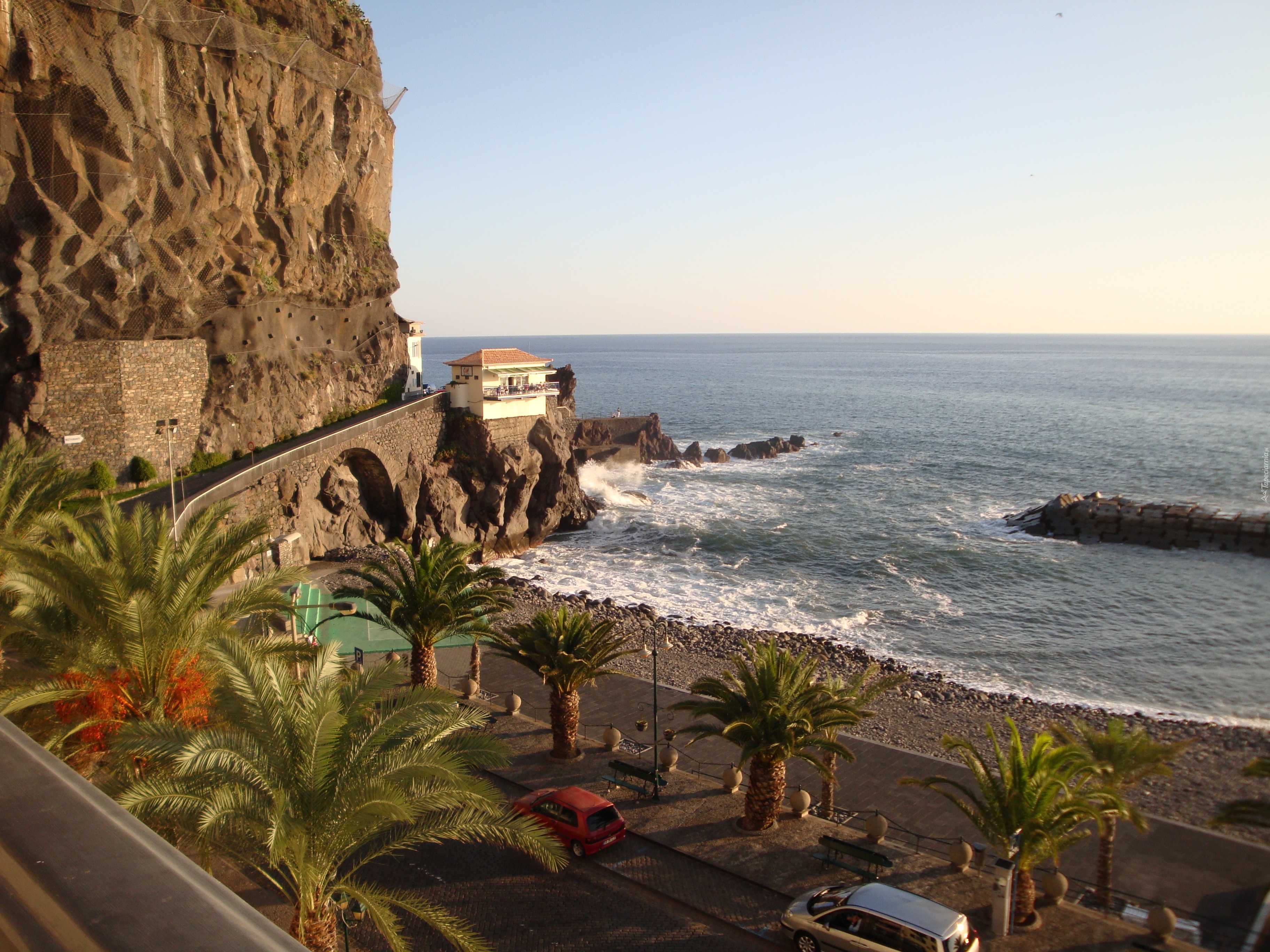 Edytor tapety: Ulica, Na, Nabrzeżu, Klif, Morze, Palmy
