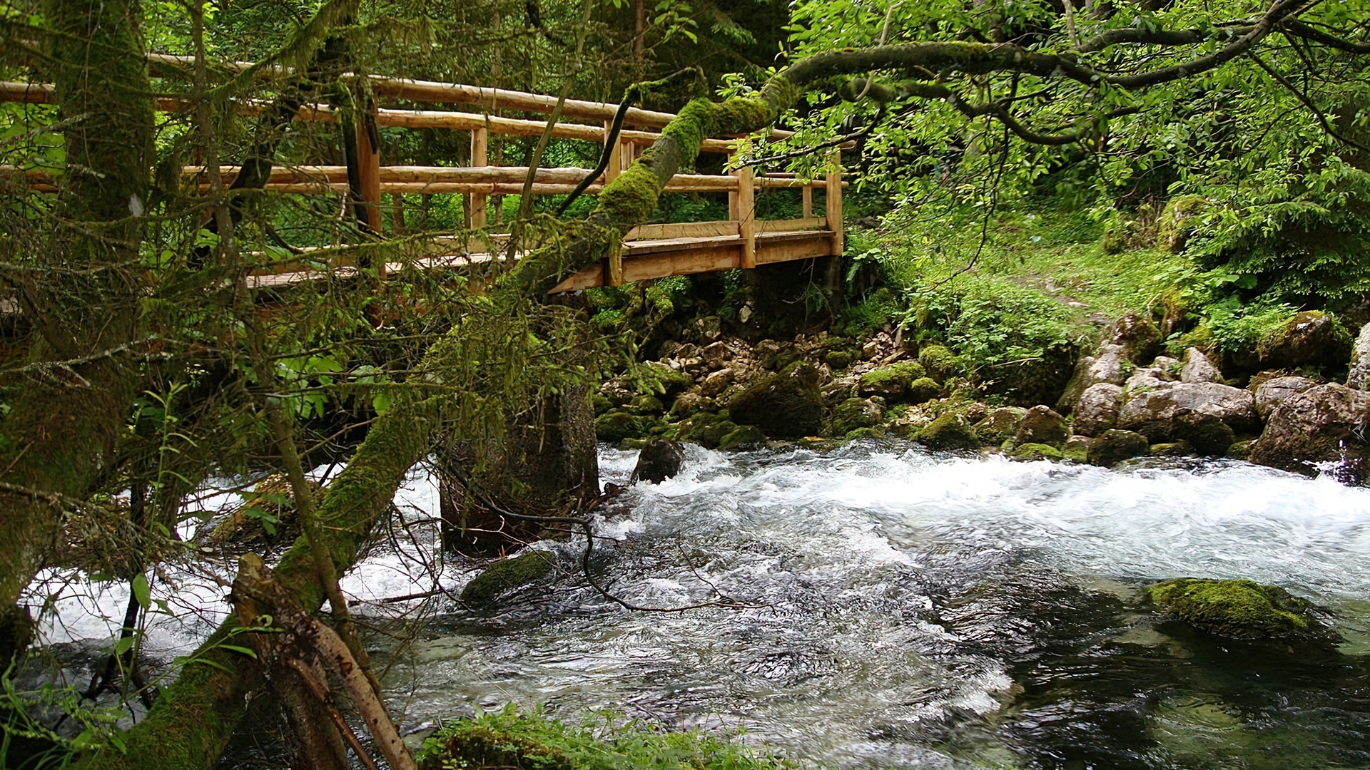 Edytor tapety: Las, Rwąca, Rzeka, Mostek