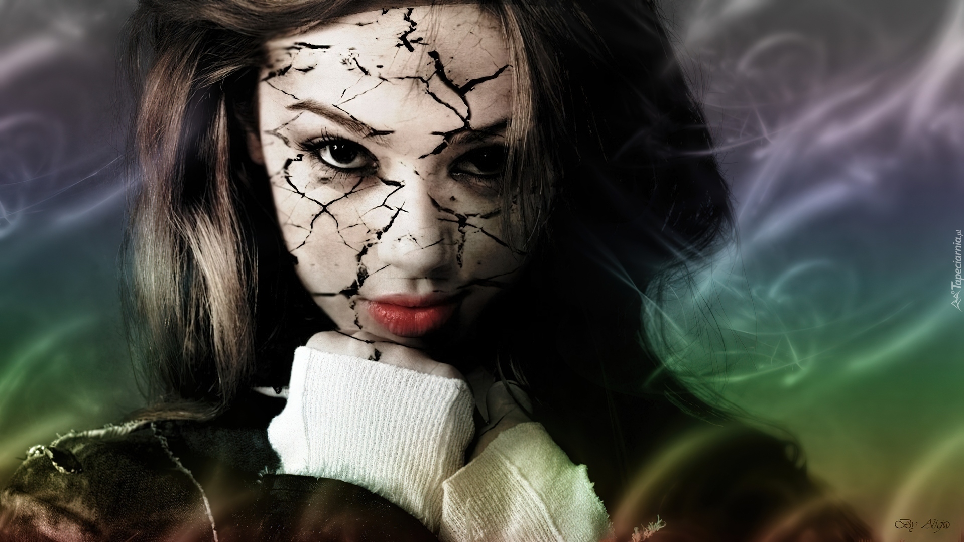 Edytor tapety: Kobieta, Twarz, Pęknięcia