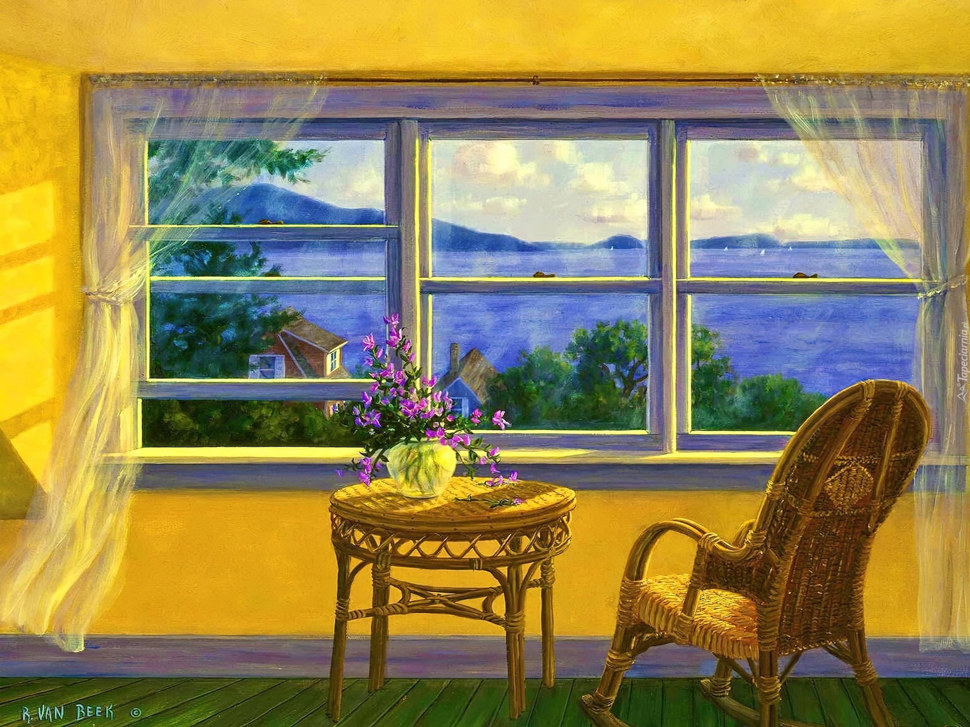 Edytor tapety: Pokój, Okno, Stolik, Fotel