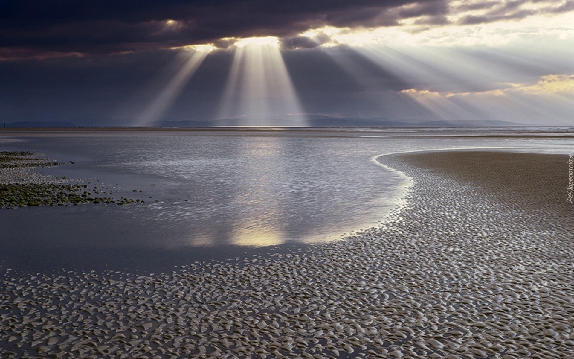 Edytor tapety: Wybrzeże, Chmury, Przebijające, Światło