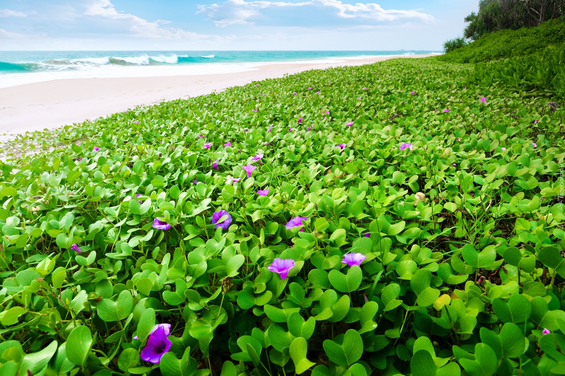 Edytor tapety: Morze, Plaża, Kwiaty