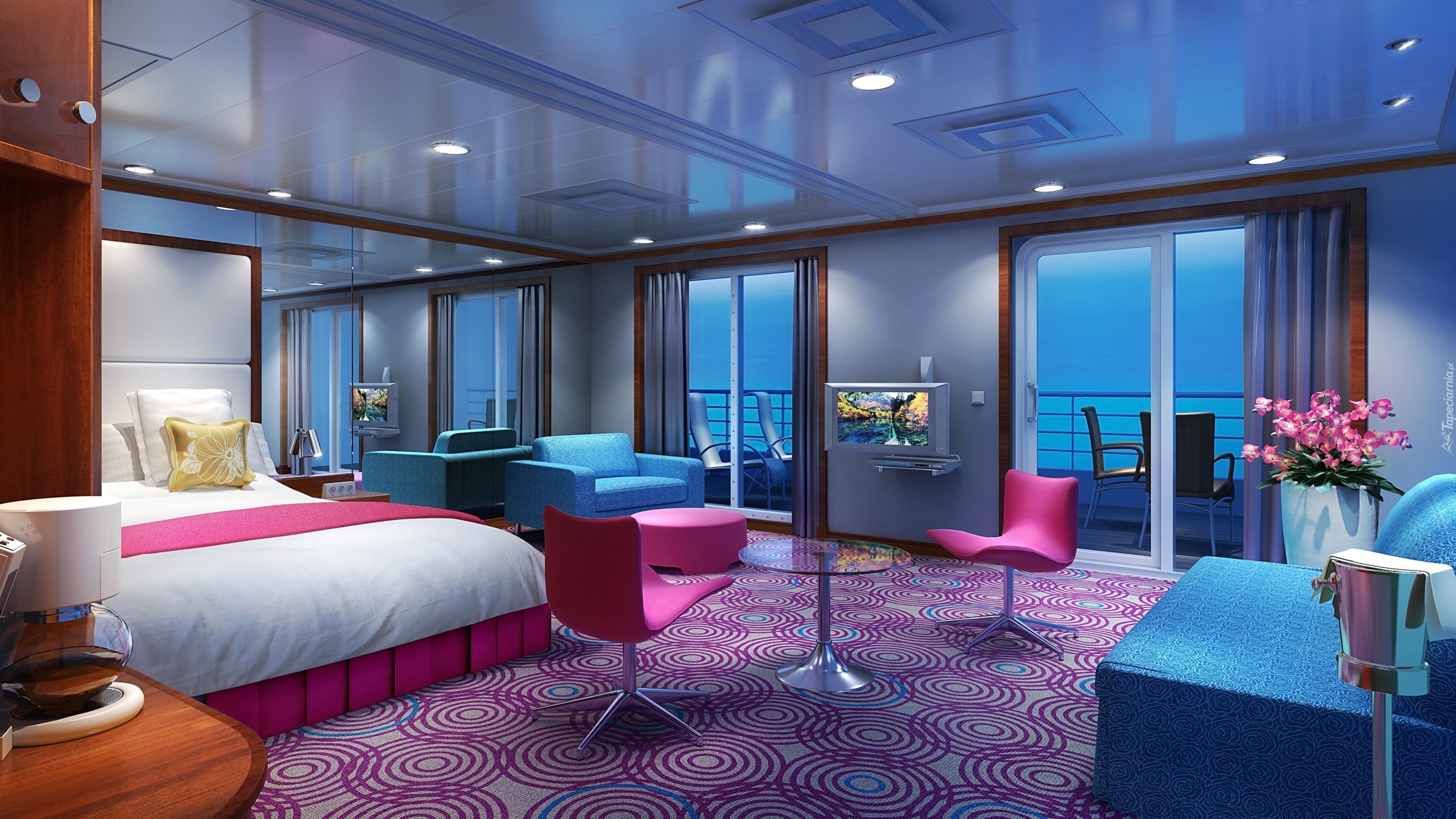 Edytor tapety: Błękitno, Różowa, Sypialnia