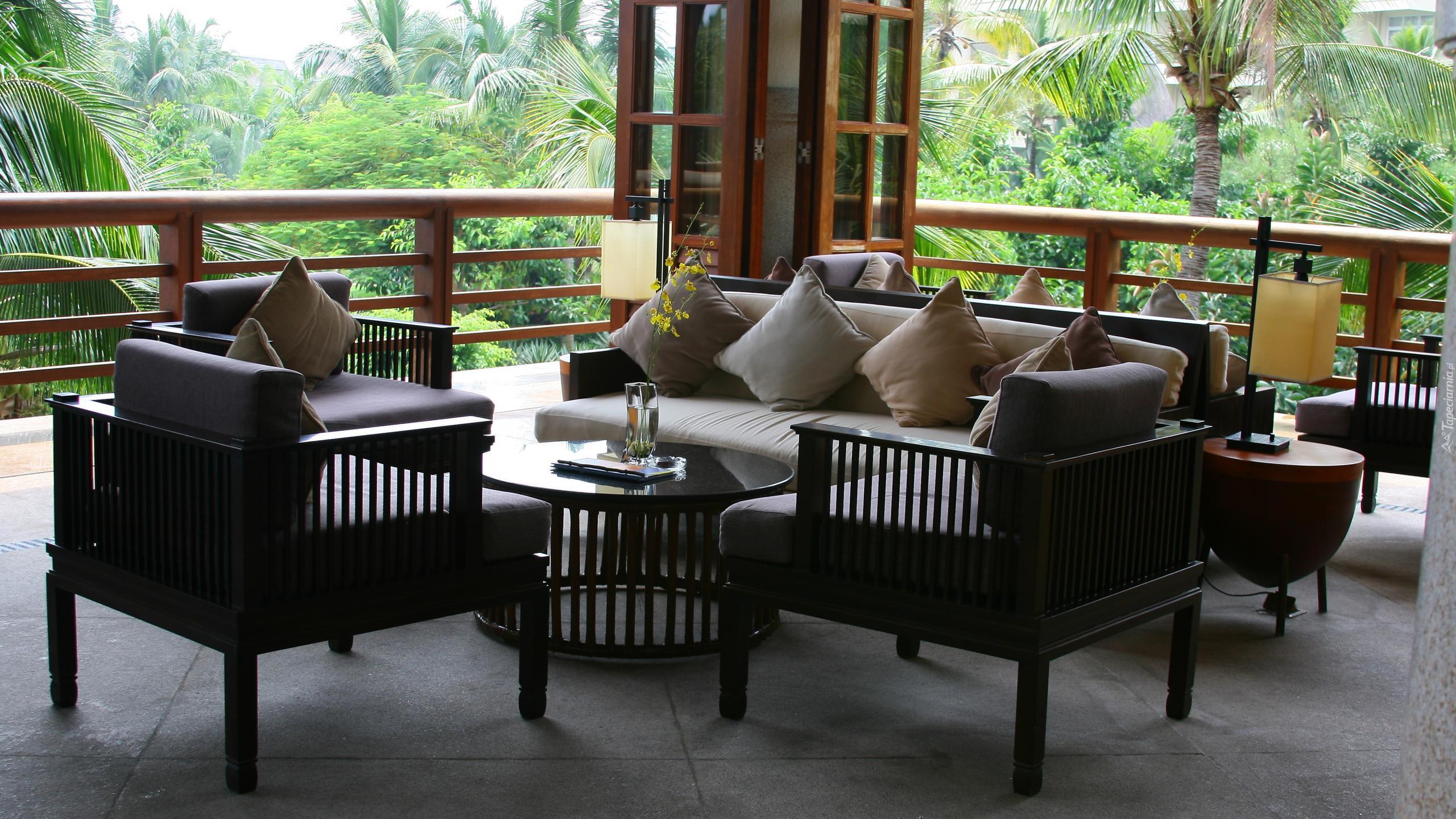 Edytor tapety: Taras, Relaks, Ogród, Palmy