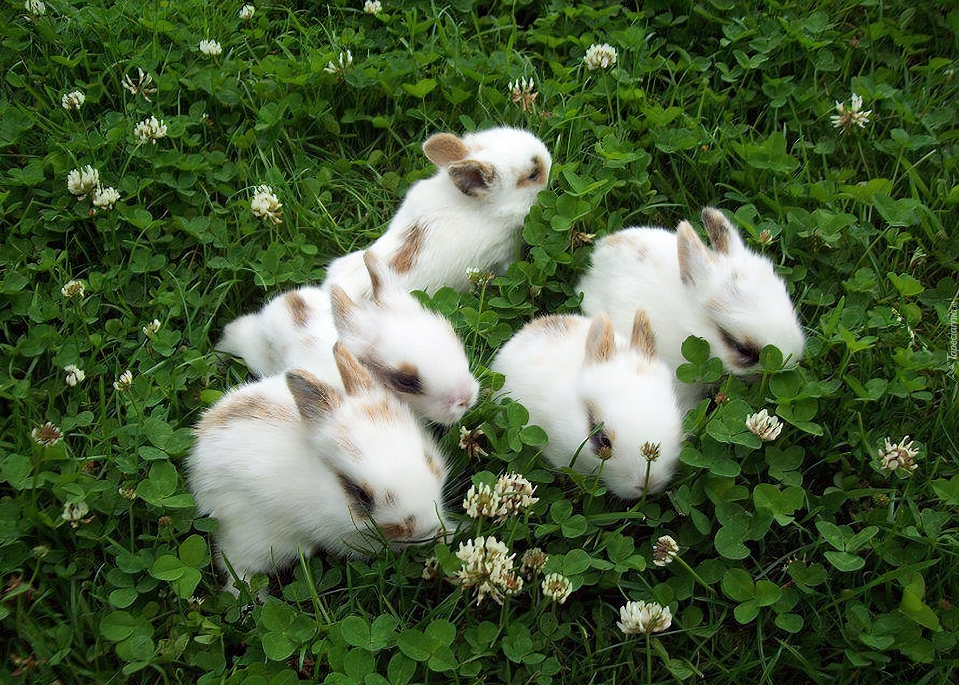 Edytor tapety: Króliki, Łąka, Koniczyna
