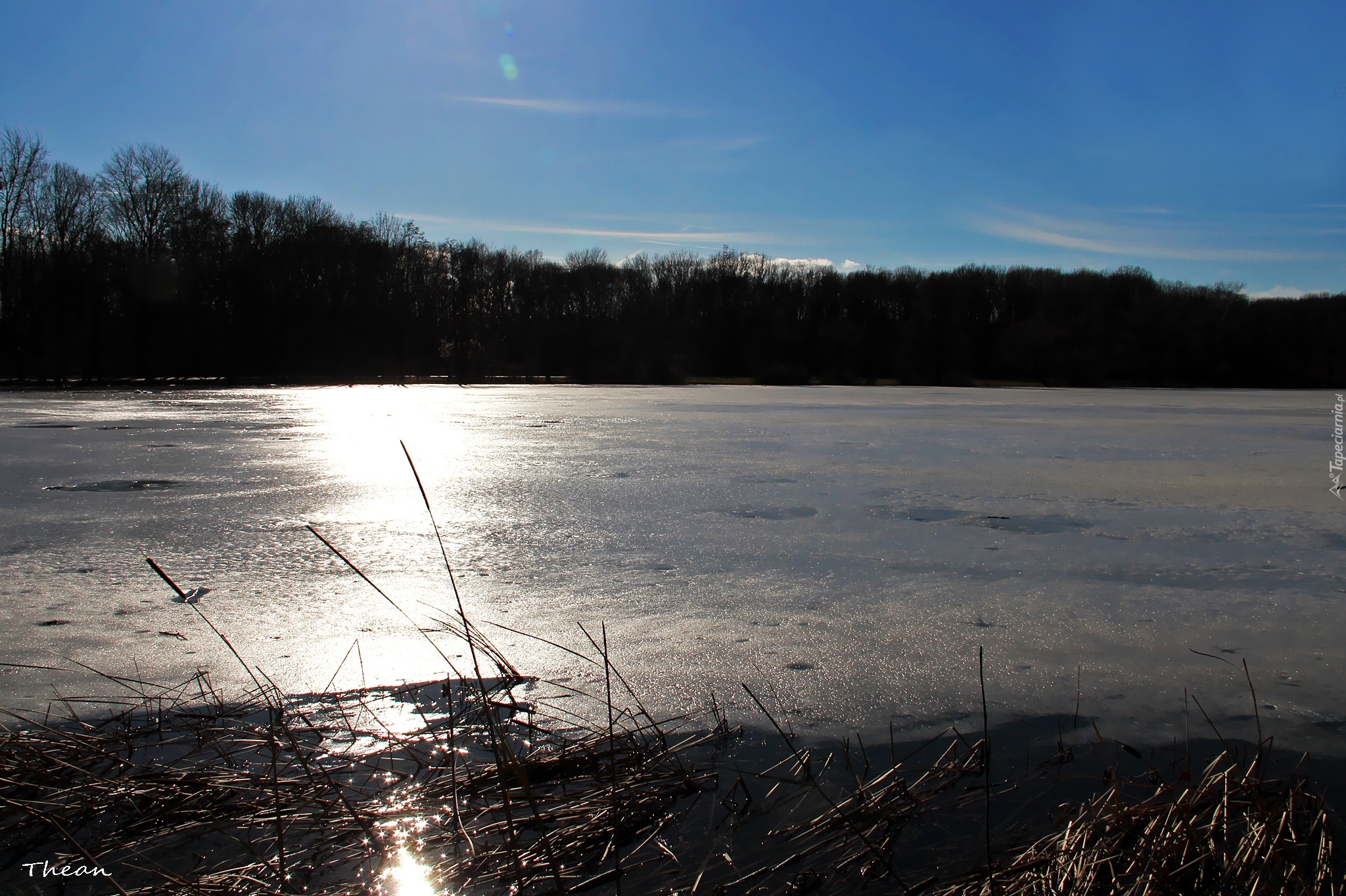 Edytor tapety: Zamarznięte, Jezioro, Drzewa, Błękitne, Niebo