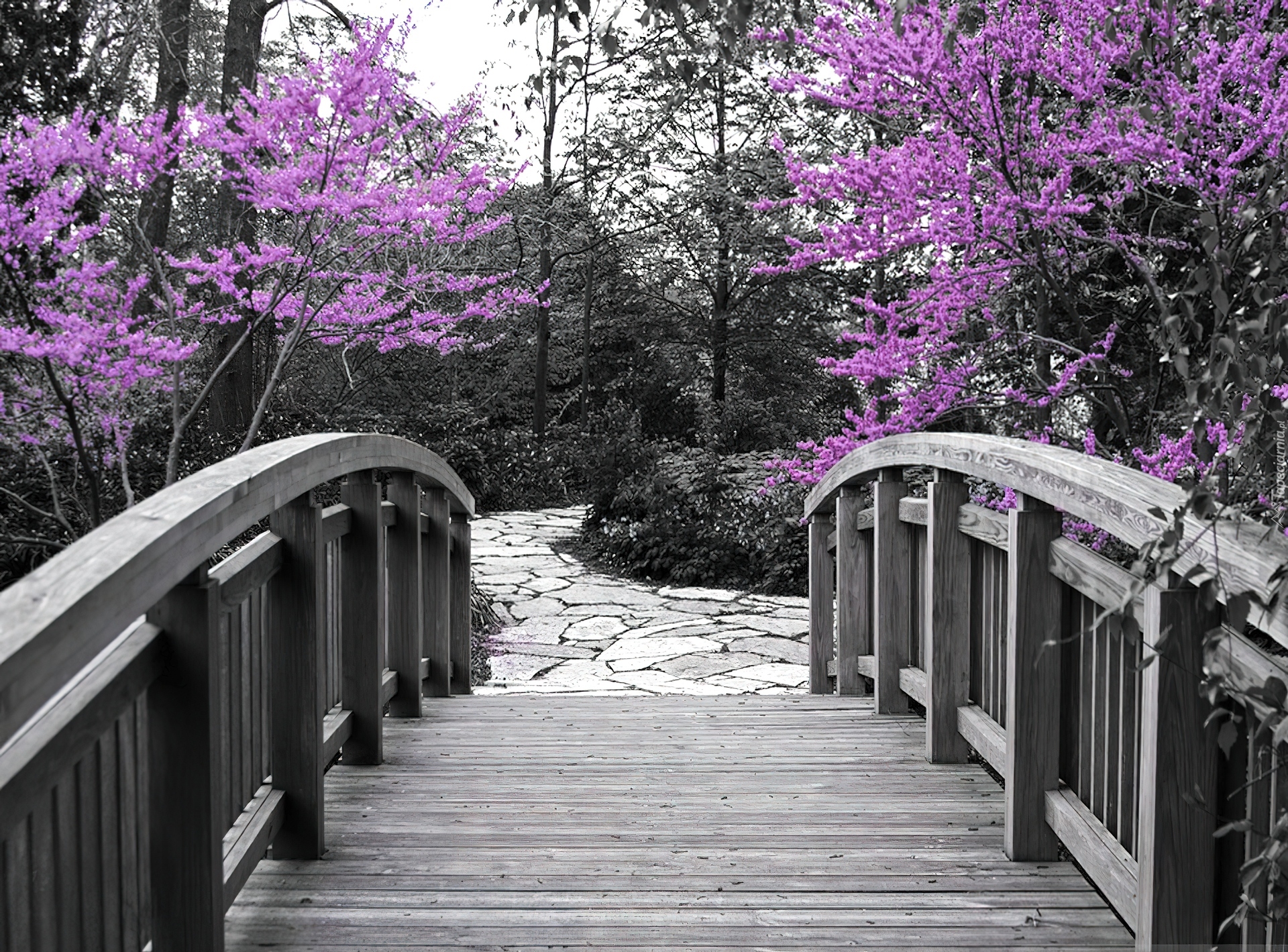 Edytor tapety: Wiosna, Mostek, Kwitnące, Drzewa