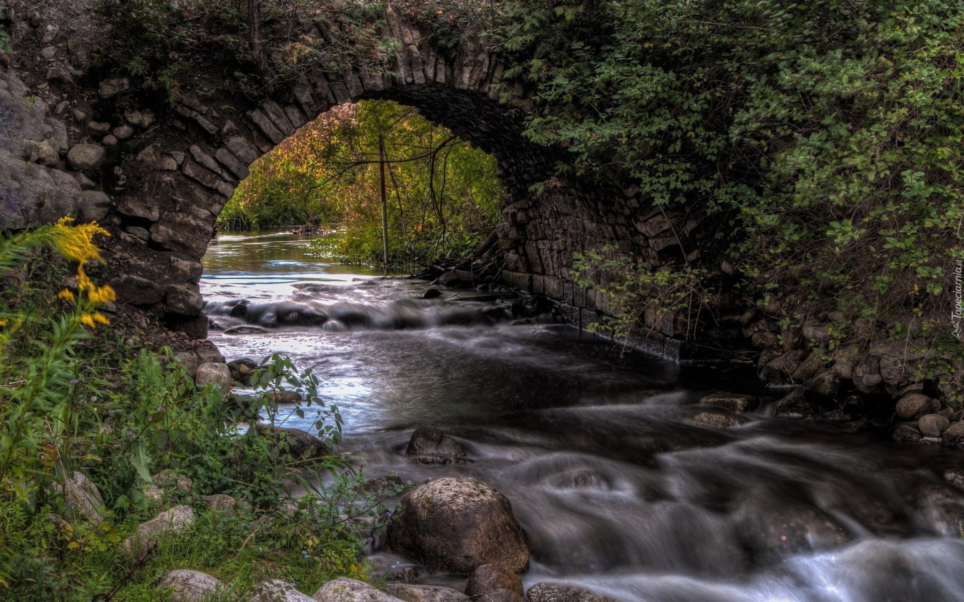 Edytor tapety: Rzeka, Most, Drzewa, Kamienie
