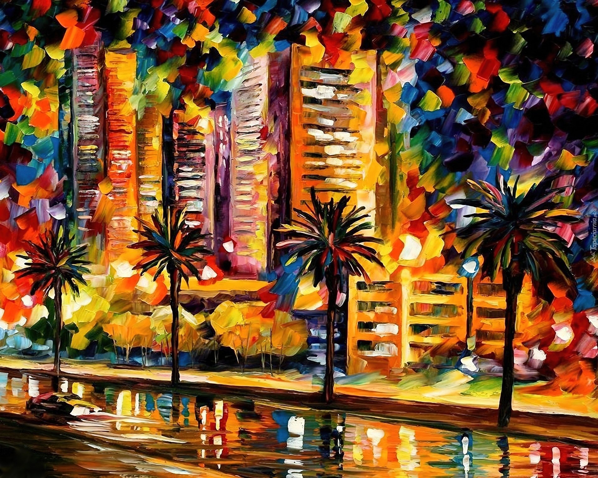 Edytor tapety: Ulica, Drapacze, Chmur, Palmy