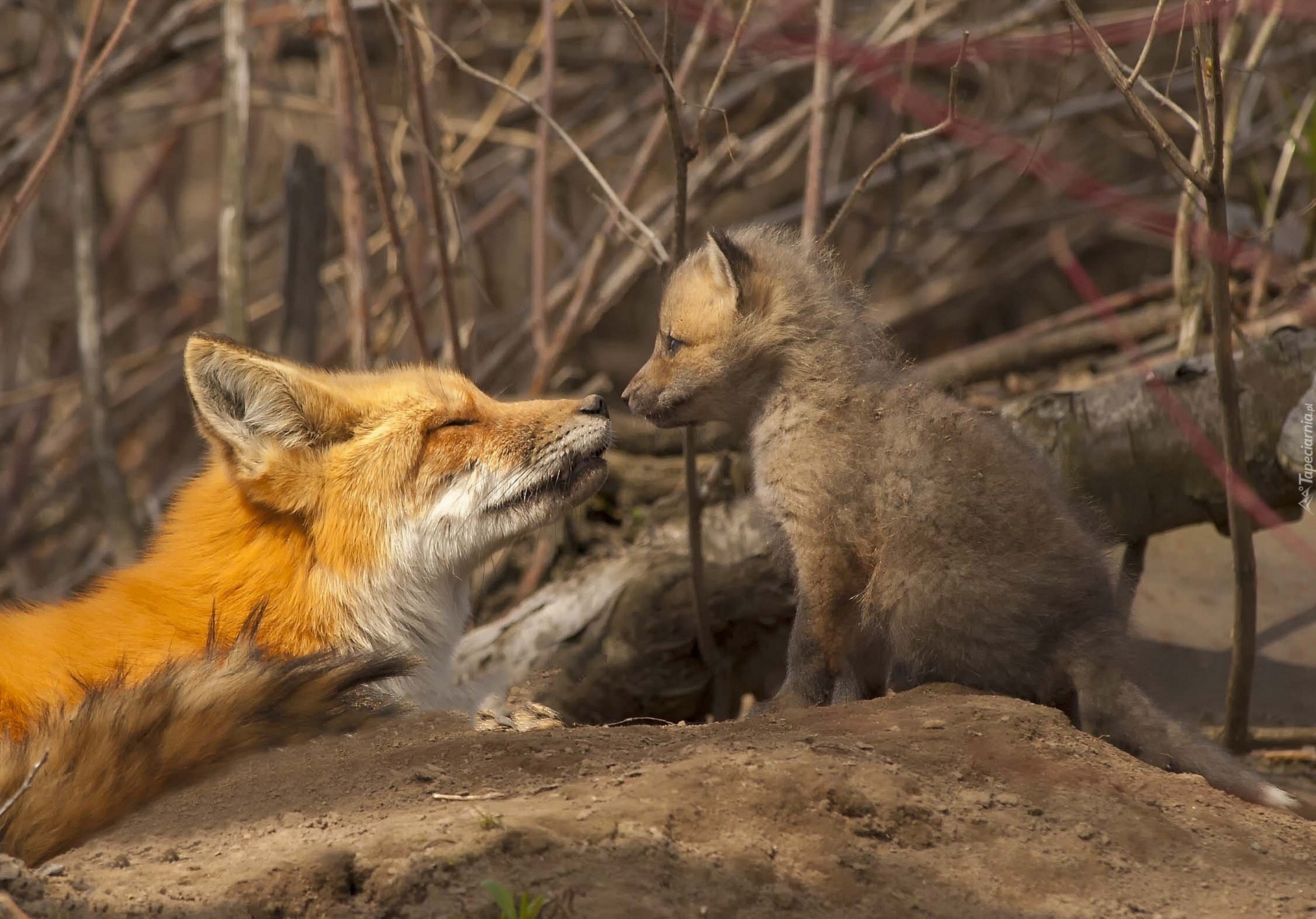Edytor tapety: Lisica, Młode, Drzewo