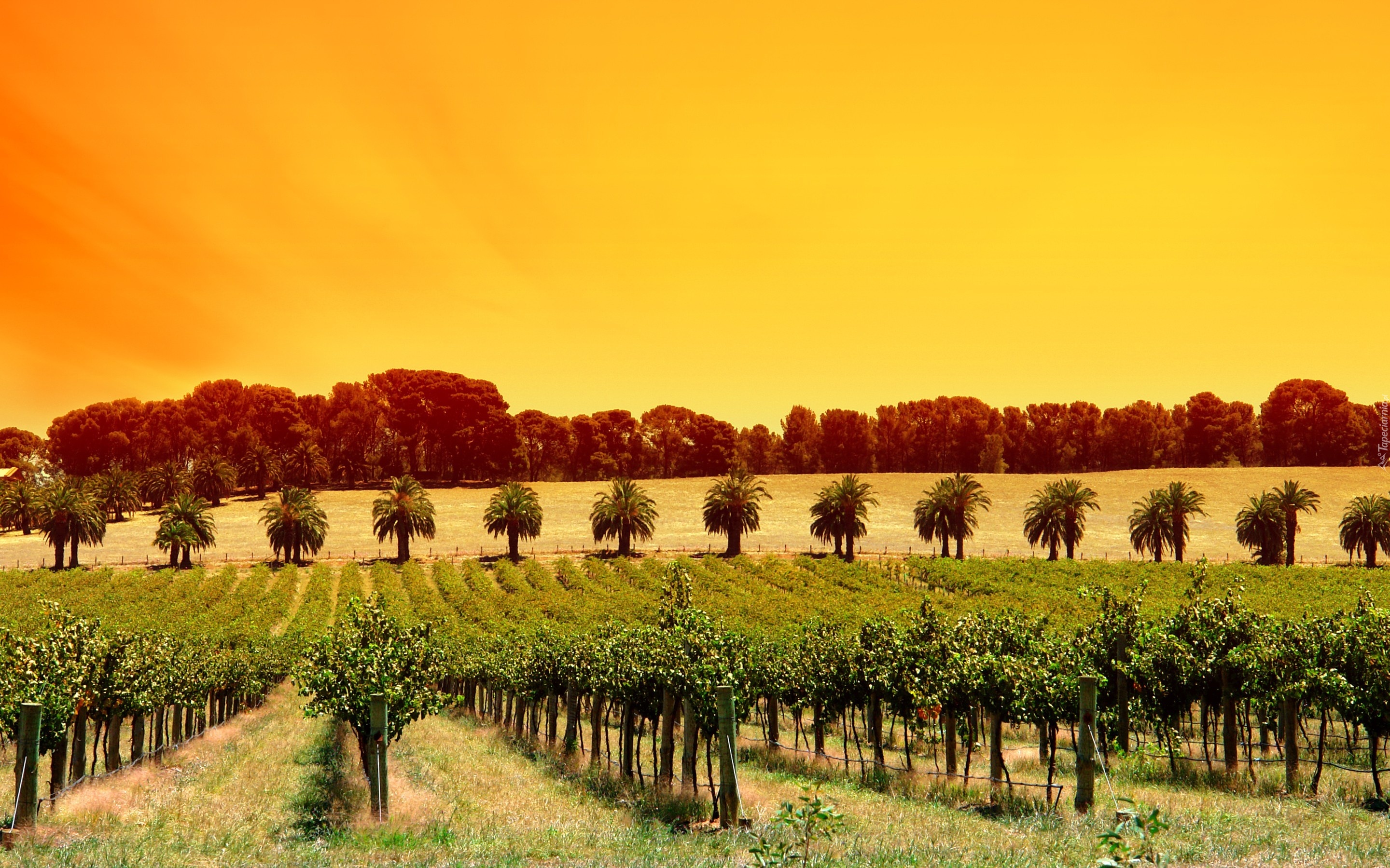 Edytor tapety: Winnica, Drzewka, Owocowe, Zachód, Słońca
