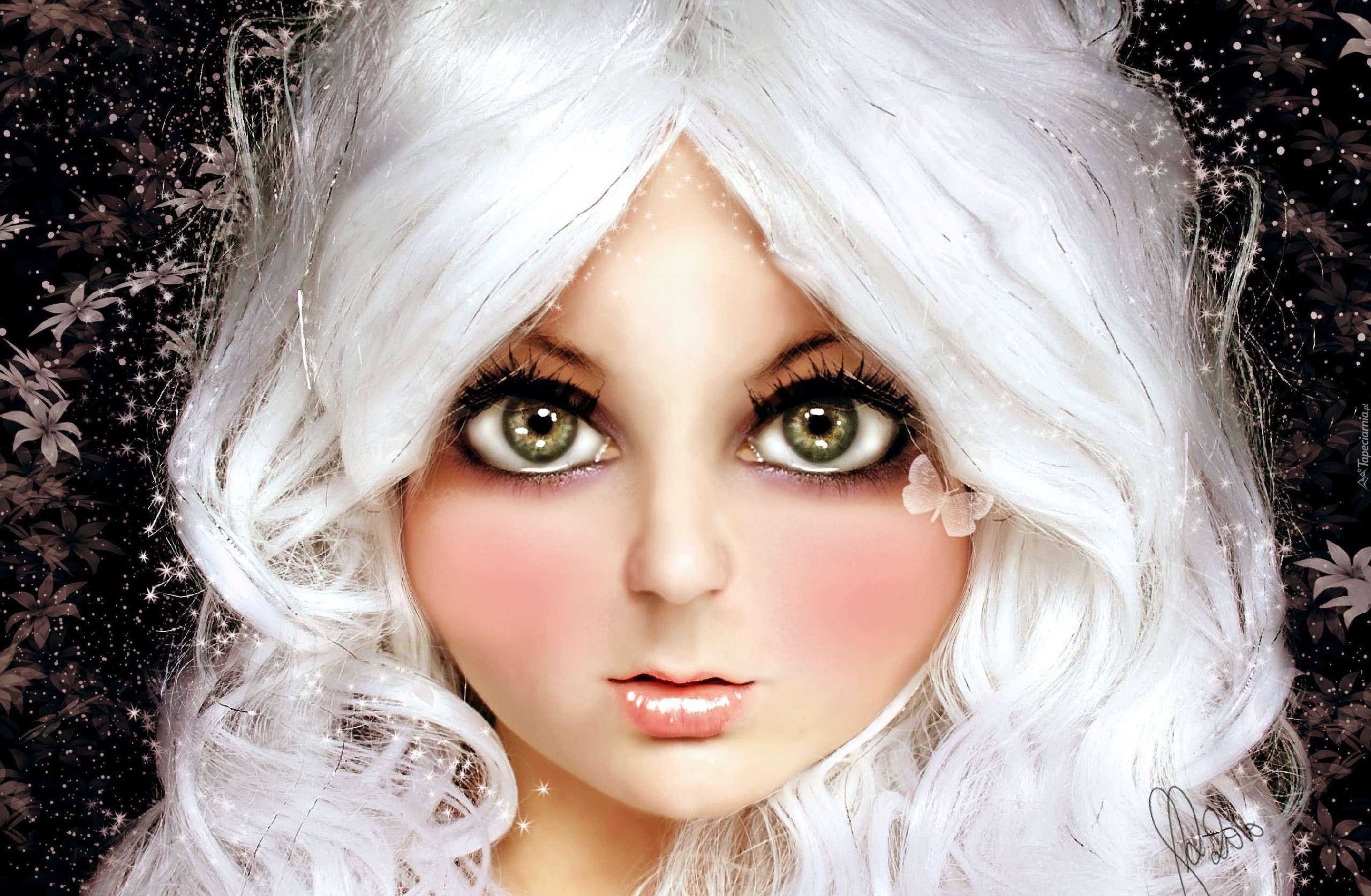 Edytor tapety: Dziewczyna, Białe, Włosy, Duże, Oczy