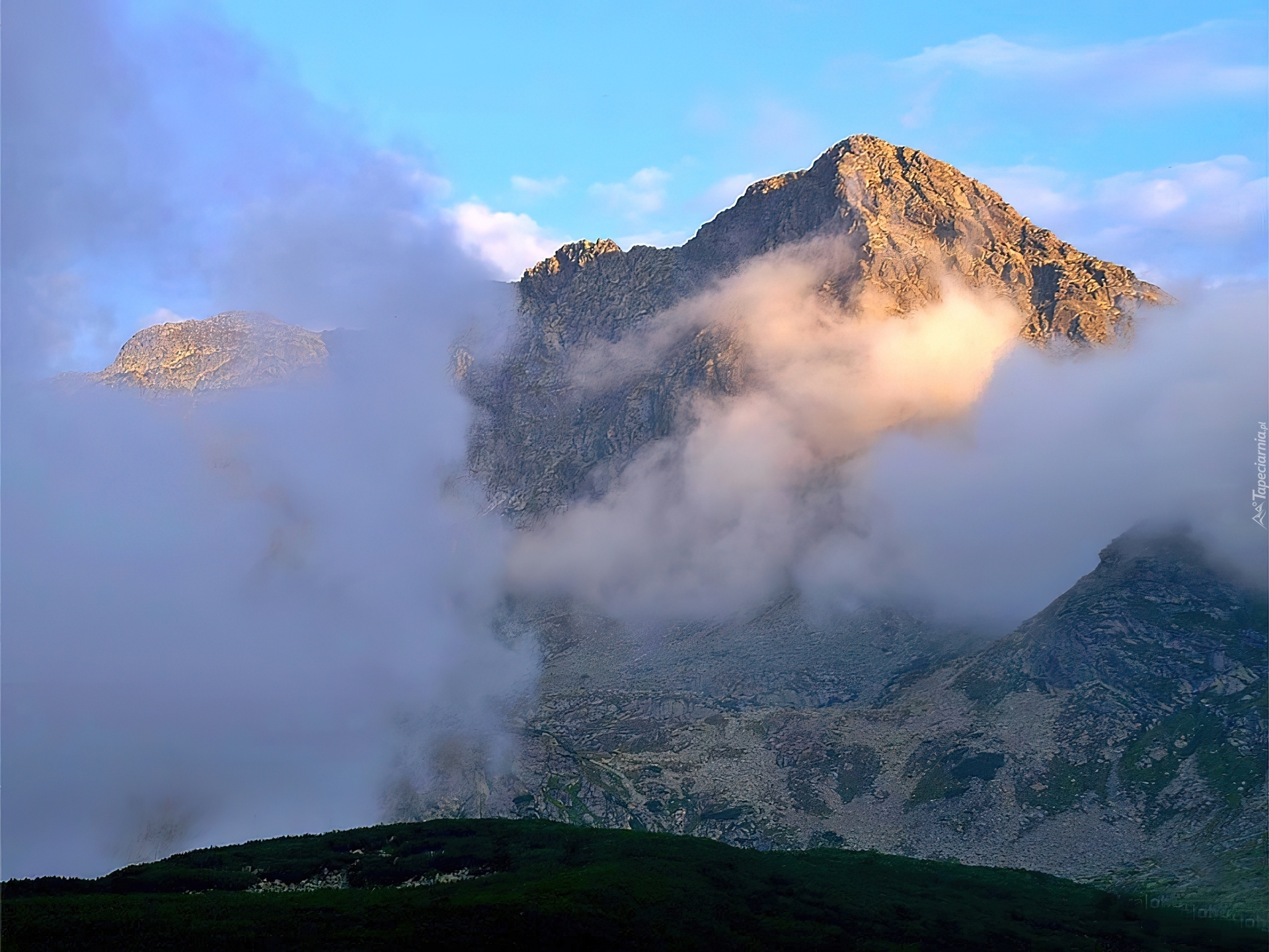 Edytor tapety: Góry, Mgła, Chmury, Lasy