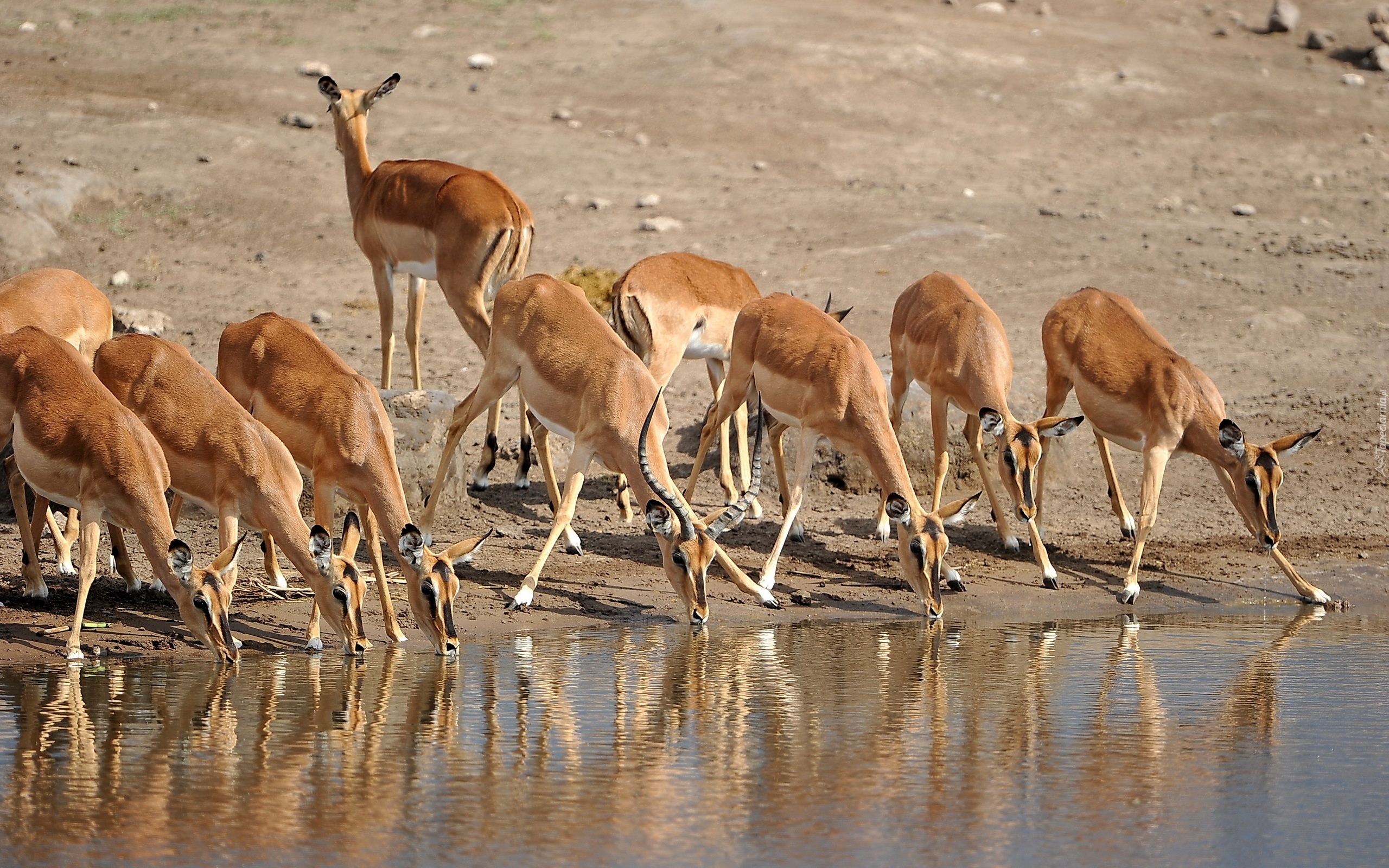 Edytor tapety: Stado, Antylop, Wodopój