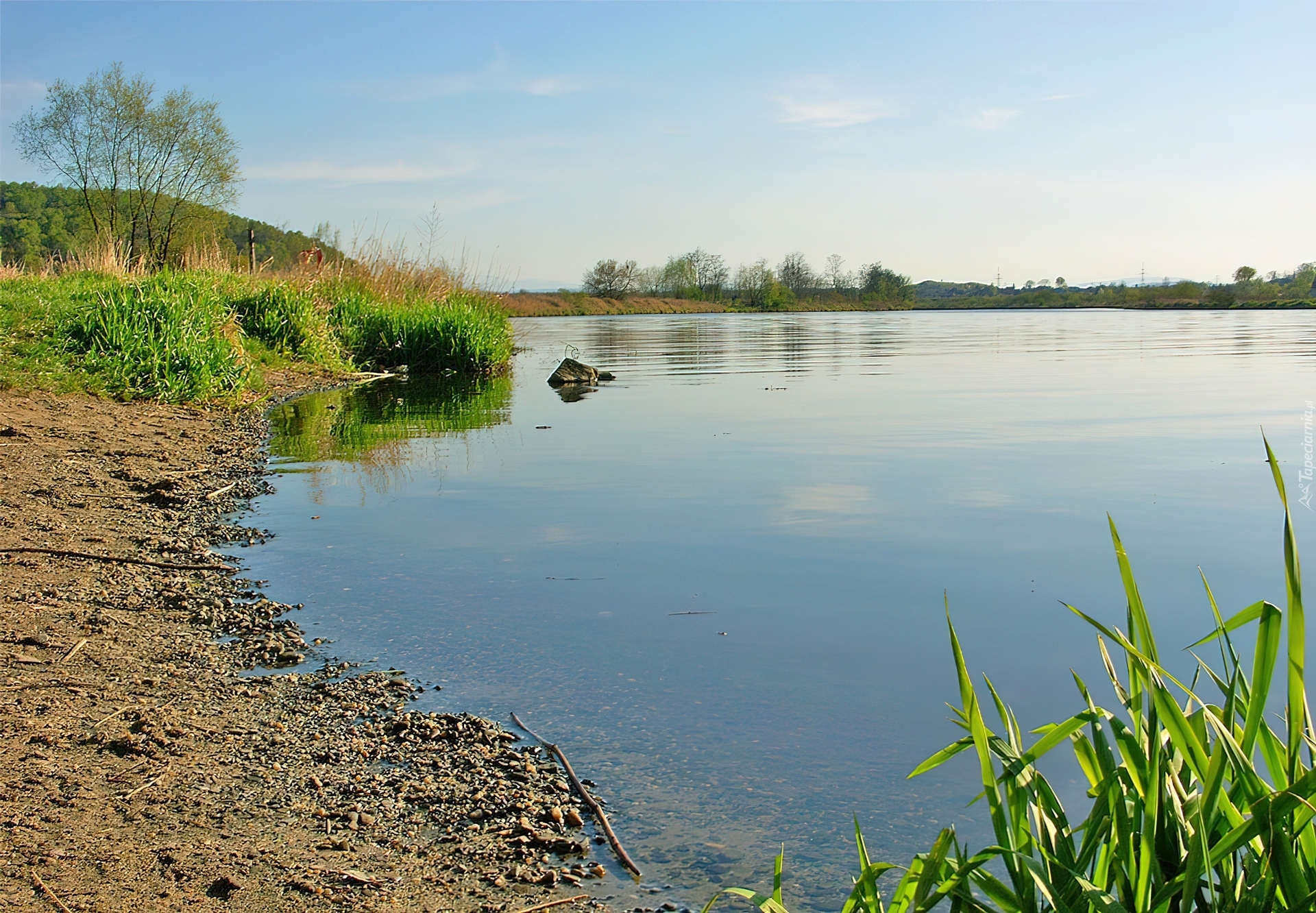 Edytor tapety: Jezioro, Plaża, Drzewa
