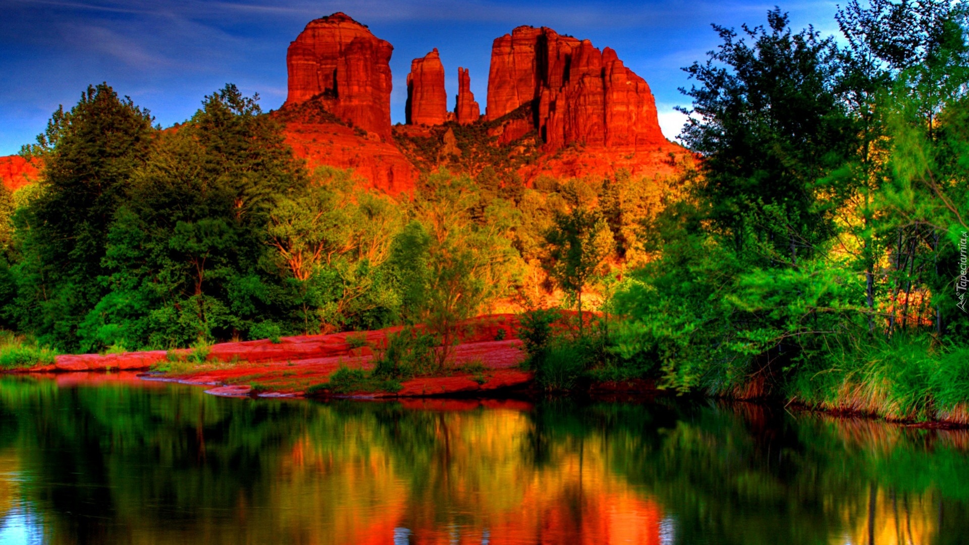 Edytor tapety: Skały, Jezioro, Odbicie, Lustrzane