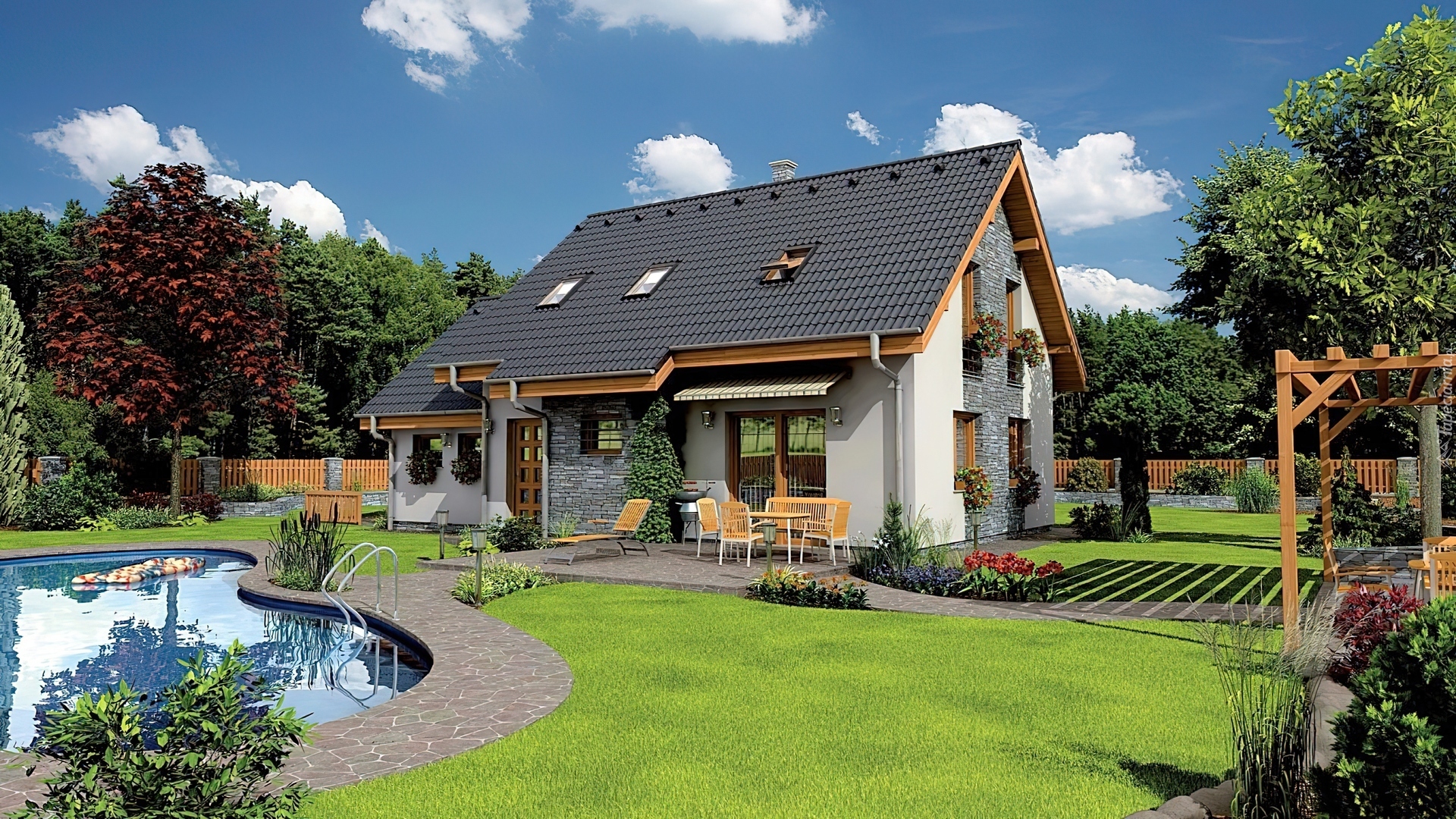 Edytor tapety: Dom, Ogród, Basen