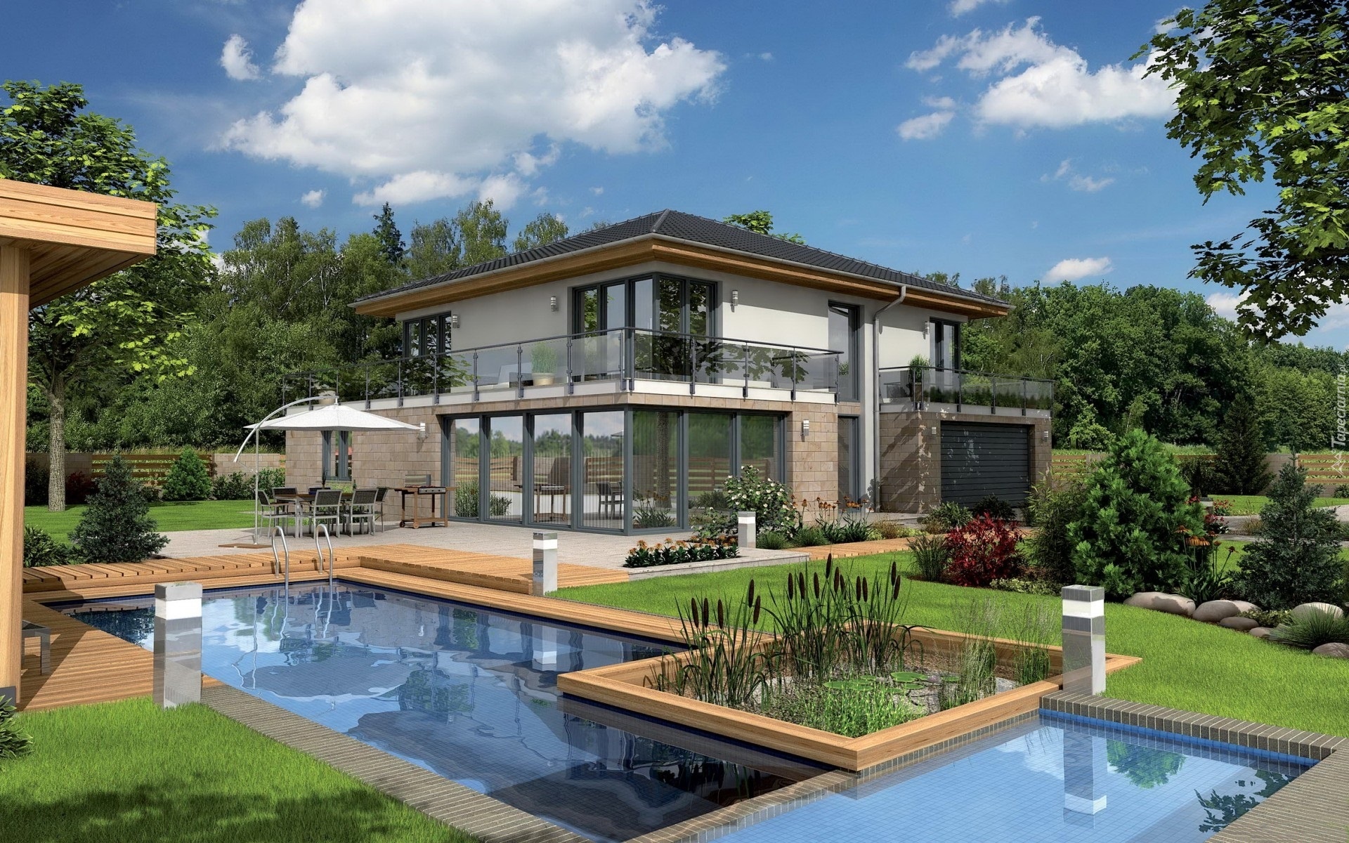Edytor tapety: Dom, Ogród, Basen, Lato