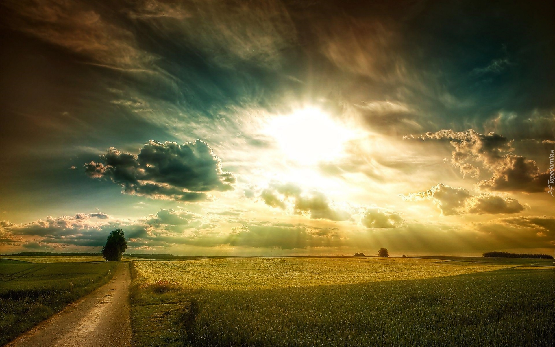Edytor tapety: Droga, Pola, Promienie, Słońca