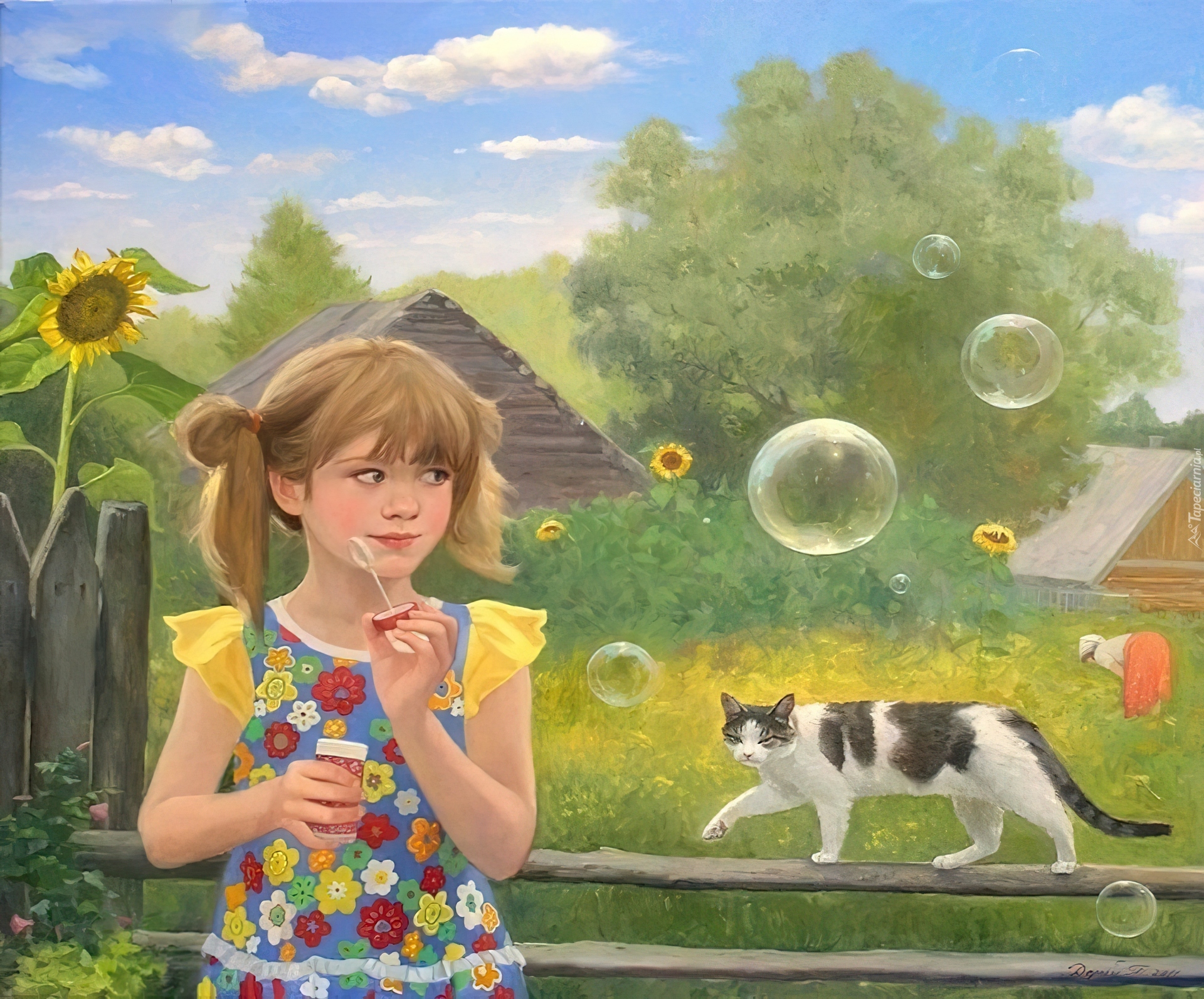 Edytor tapety: Dziewczynka, Bańki, Mydlane, Kot