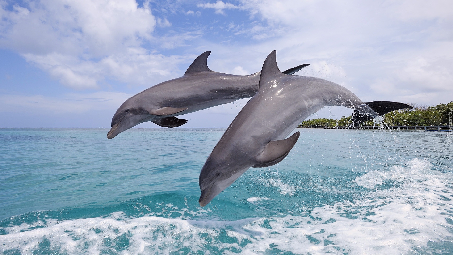 Edytor tapety: Dwa, Delfinki, Morze