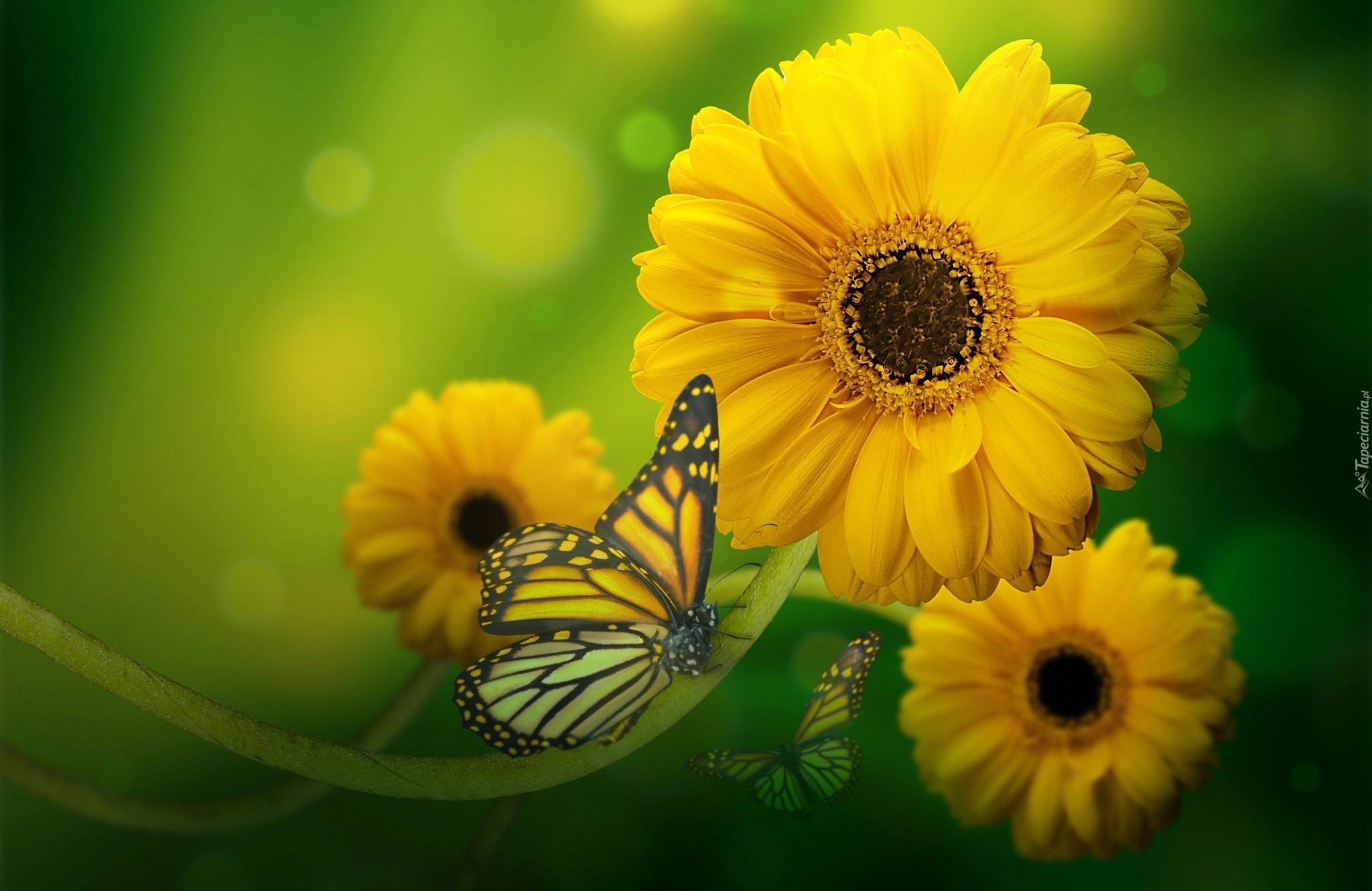 Edytor tapety: Żółte, Gerbery, Motyle