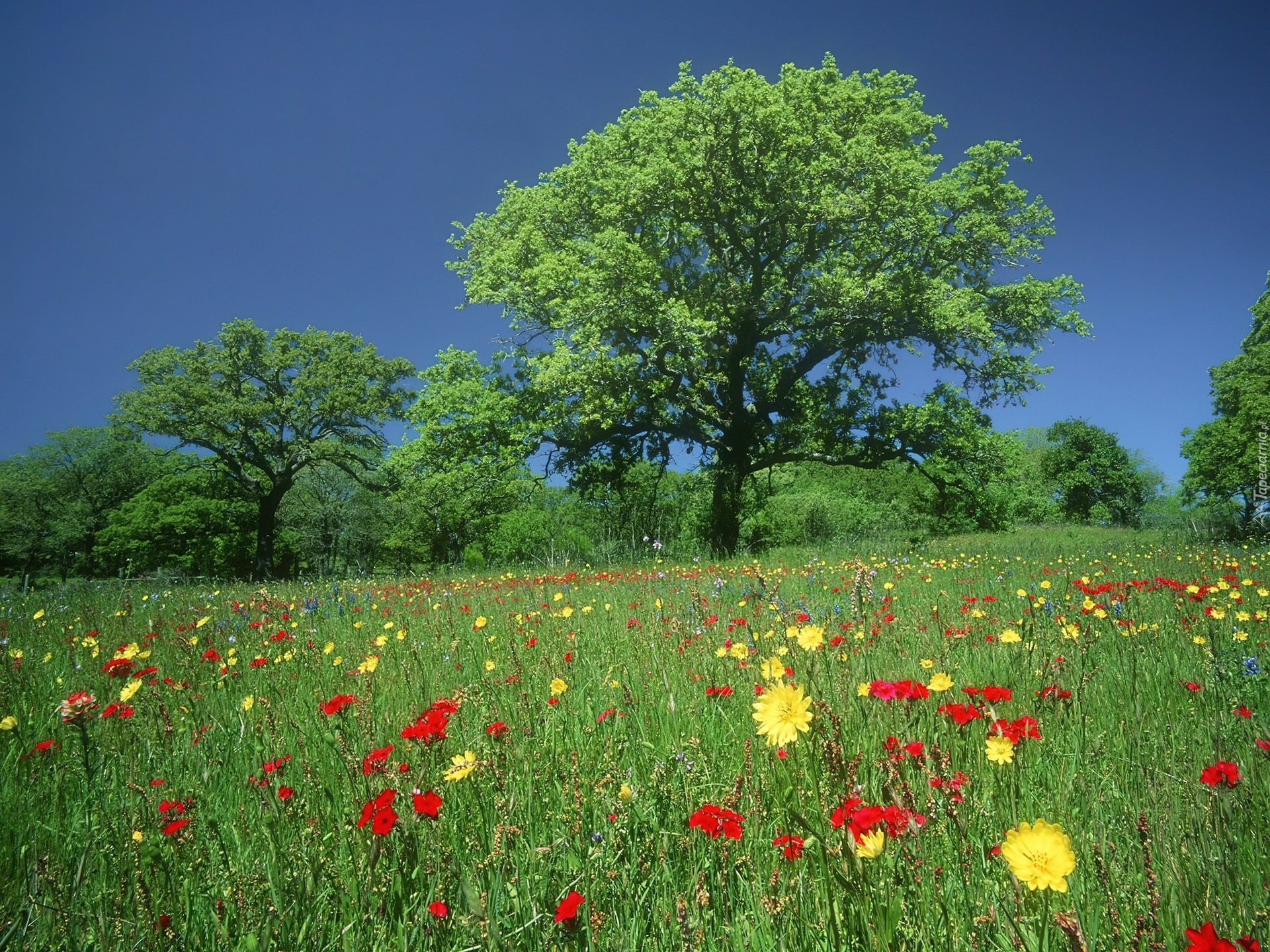 Edytor tapety: Łąka, Kwiatki, Drzewa