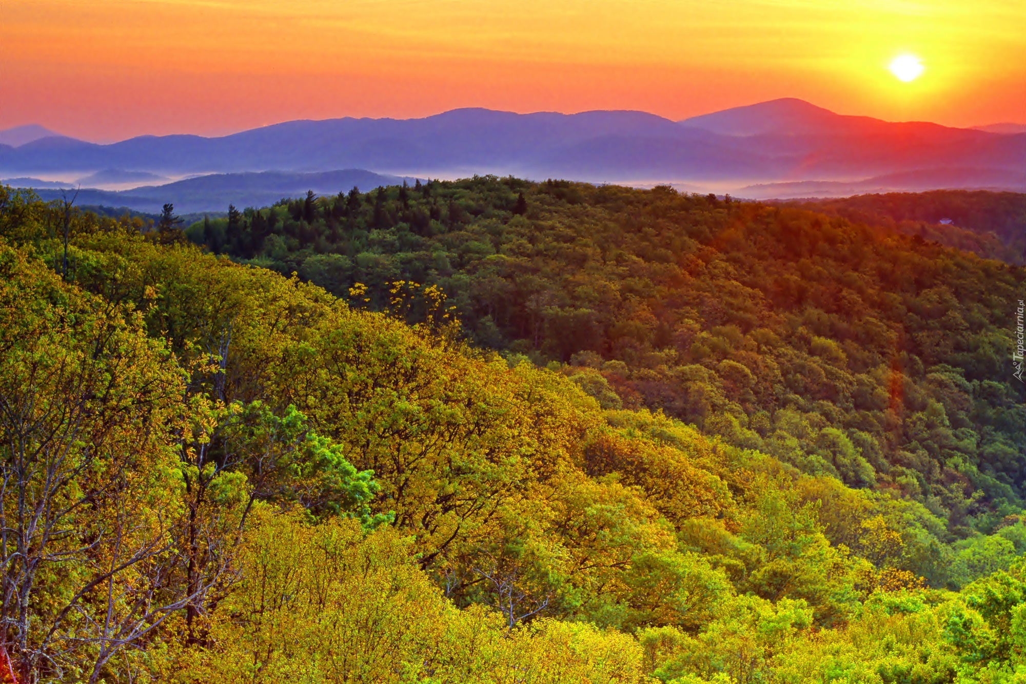 Edytor tapety: Lasy, Góry, Zachód Słońca