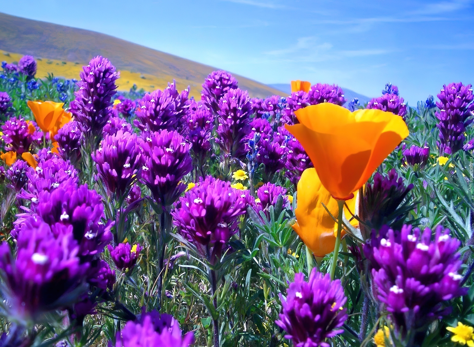 Edytor tapety: Łąka, Kwiaty, Góry, Wiosna