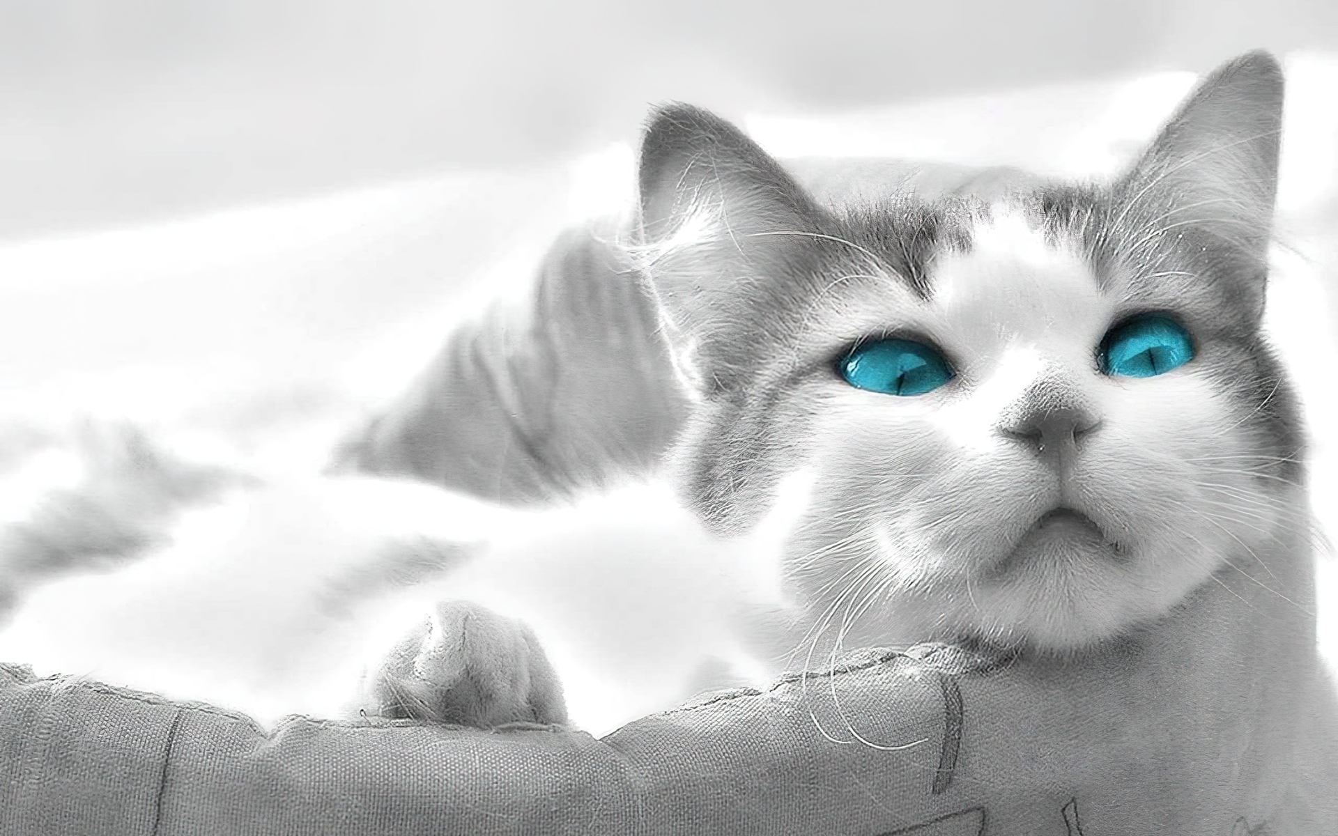 Edytor tapety: Kotek, Niebieskie, Oczy, Legowisko
