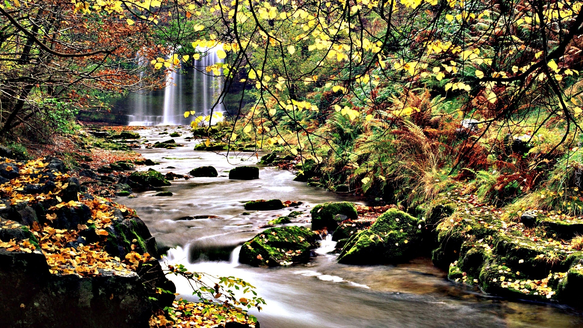 Edytor tapety: Las, Rzeczka, Wodospad