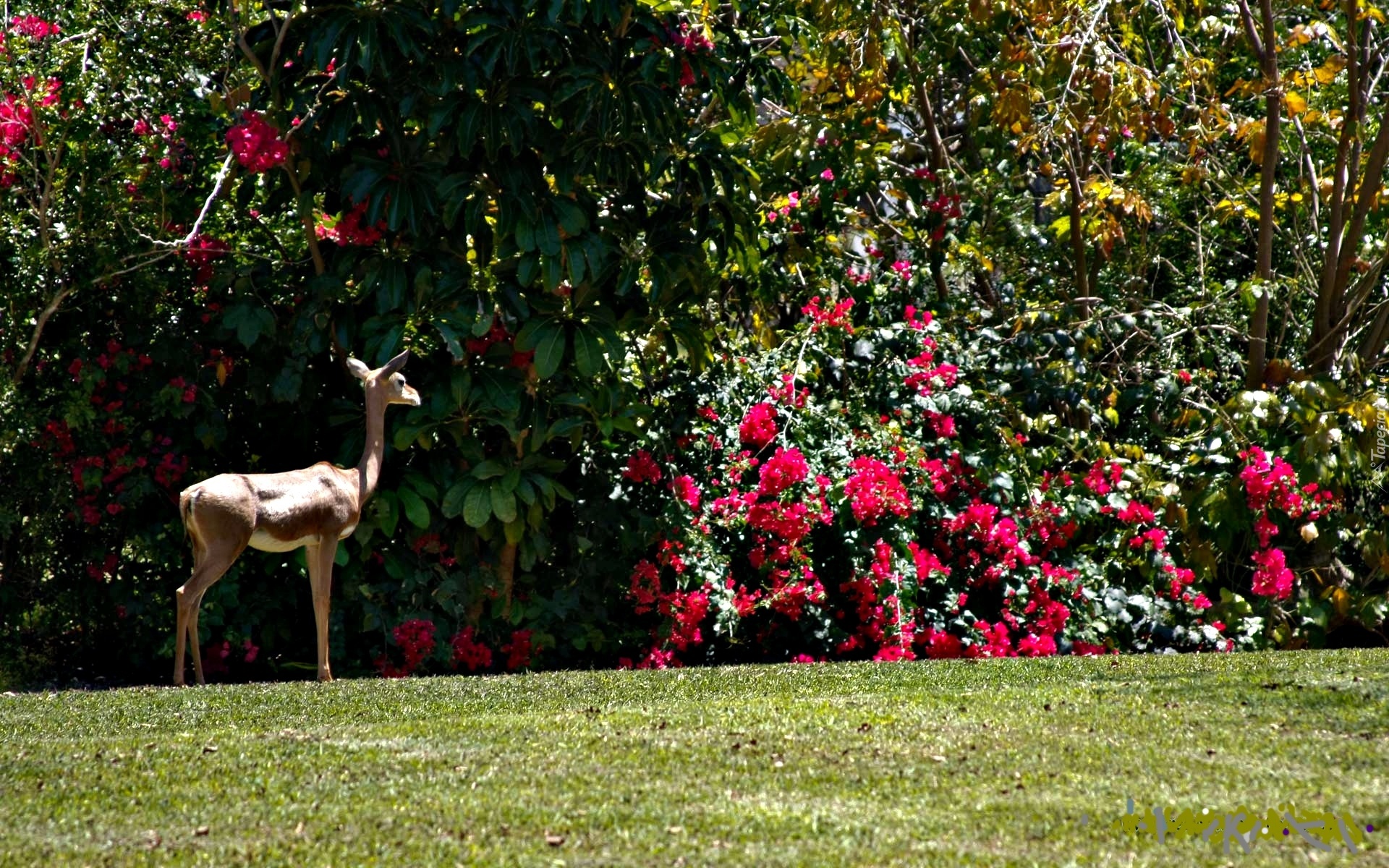 Edytor tapety: Las, Krzewy, Kwitnącej, Bugenwilli, Łąka, Łania