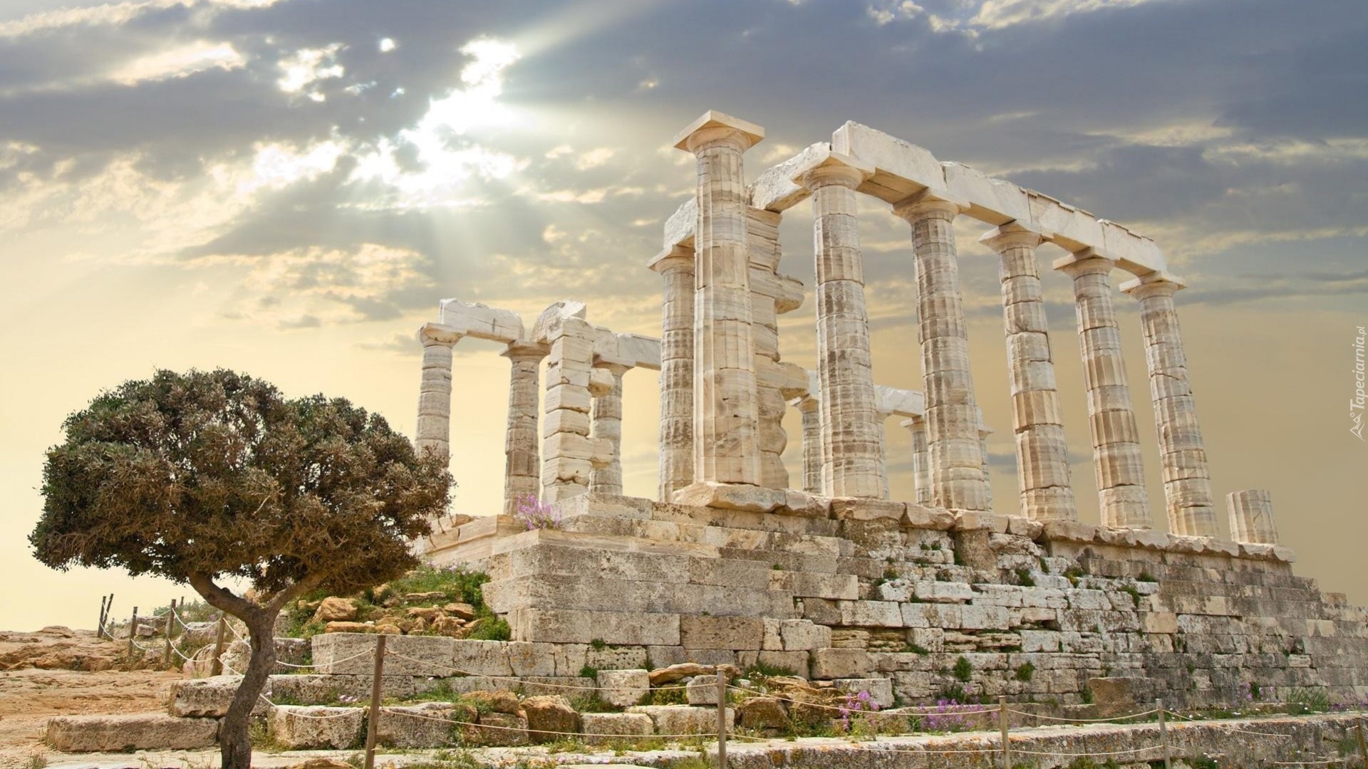 Edytor tapety: Grecja, Przylądek Sunion, Świątynia Posejdona, Ruiny, Zabytek