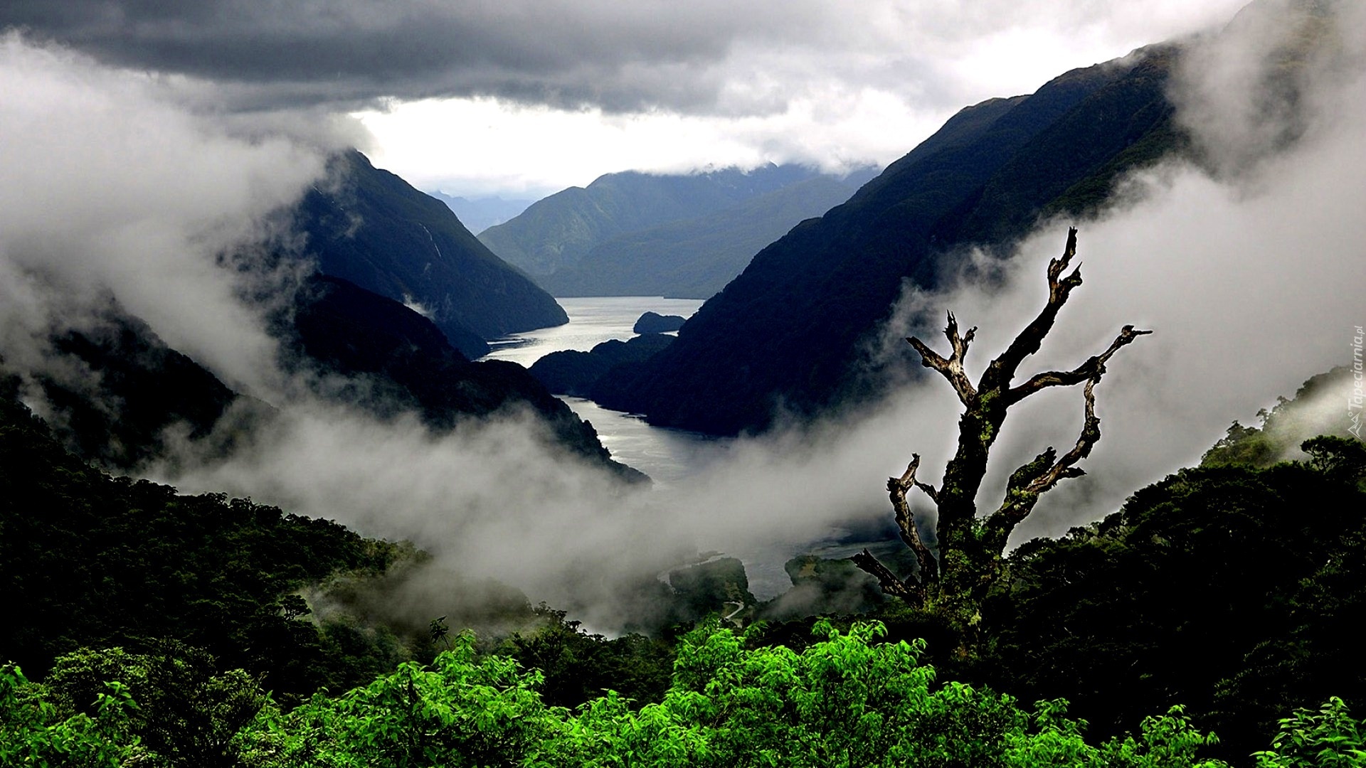 Edytor tapety: Góry, Rzeka, Mgła, Chmury